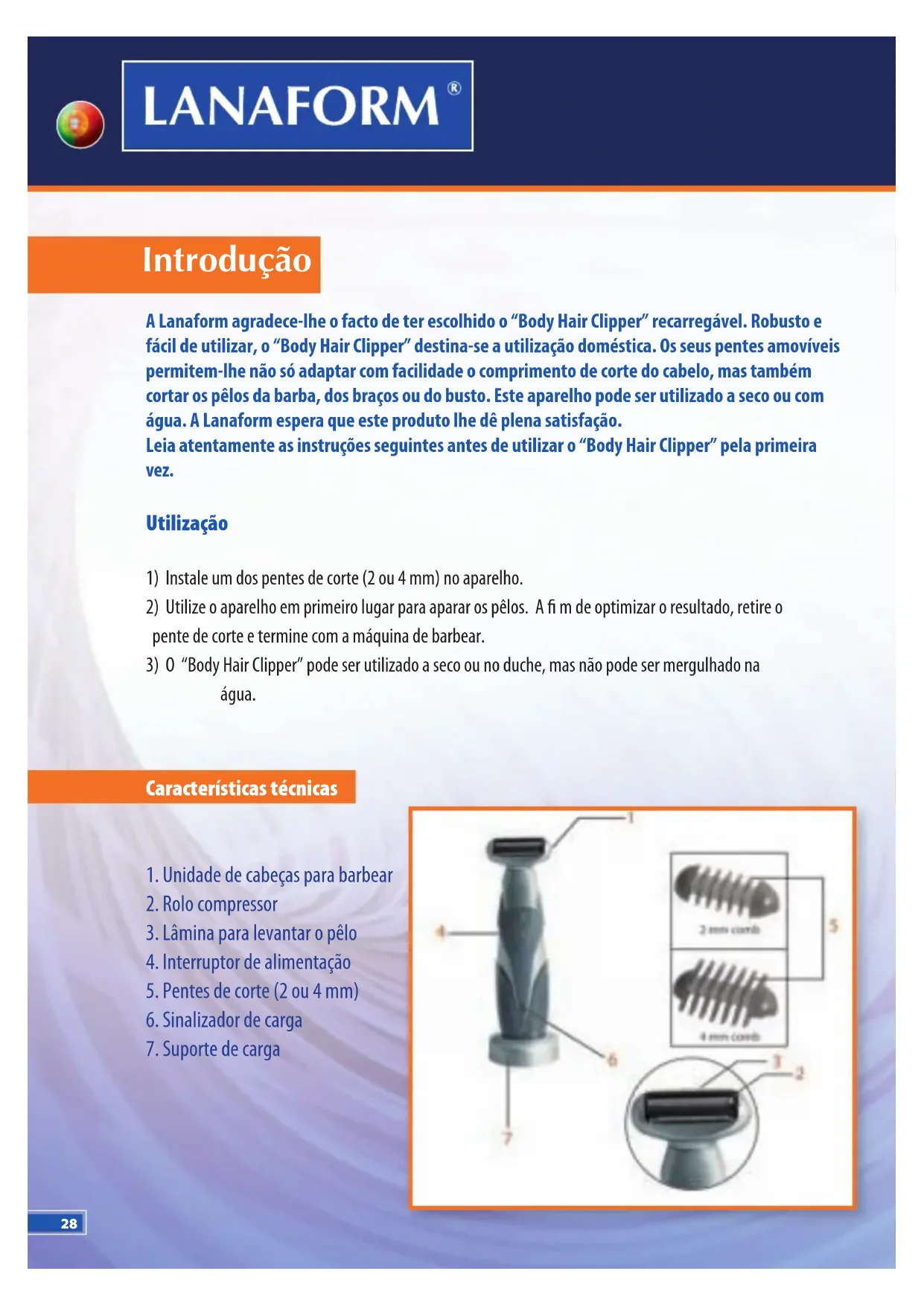 Encontre gratuitamente o manual do aparelho Body Hair Clipper LANAFORM em formato PDF.