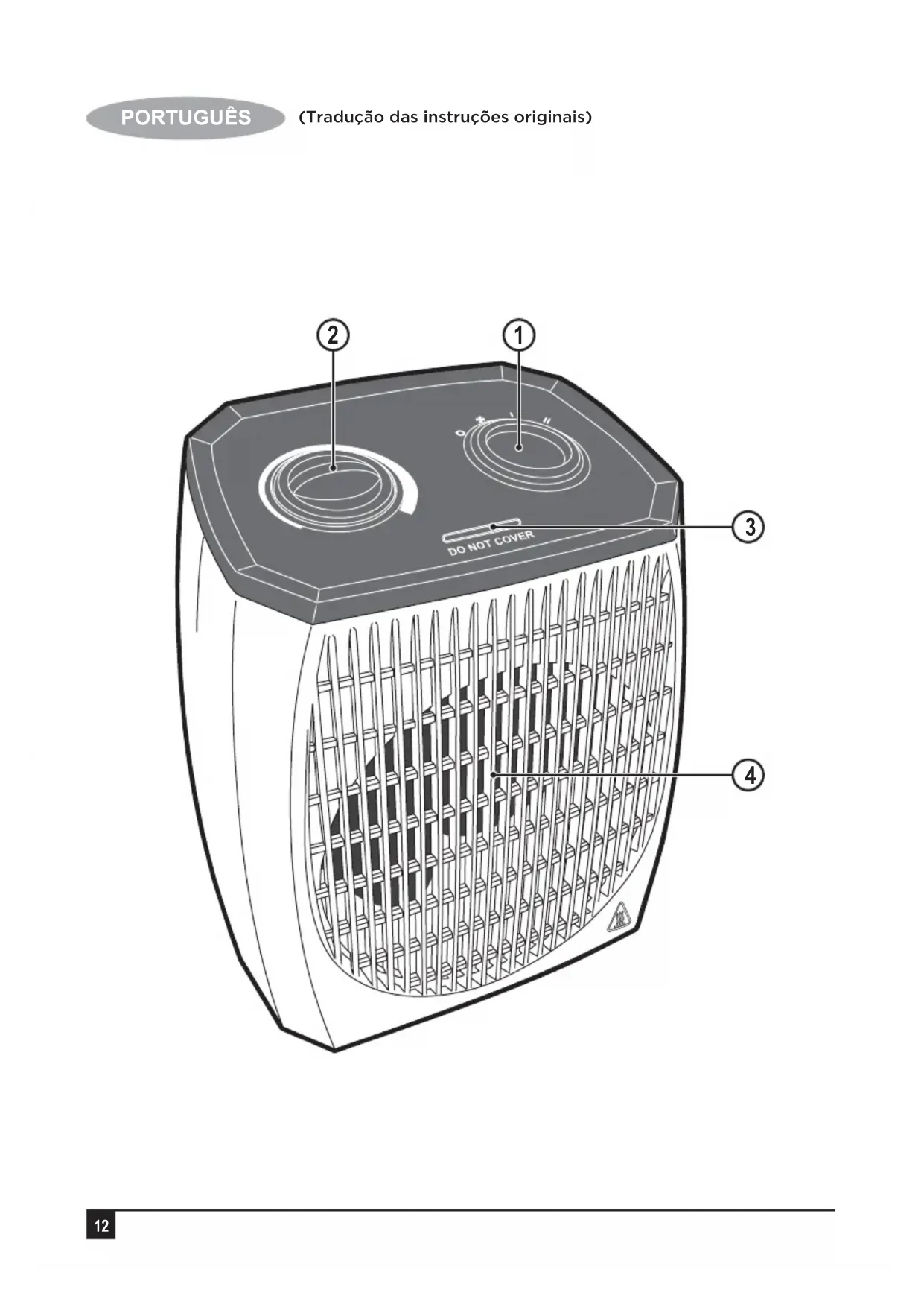 - Verifique se a tensão de alimentação, indicada na placa de classificação do aparelho, condiz com a do seu sistema elétrico. Qualquer erro de ligação invalidará a garantia.15 PORTUGUÊS (Tradução das instruções originais) Etiquetas no aparelho Os seguintes pictogramas juntamente com o código da data são apresentados no aparelho: Aviso! Superfície quente. Aviso! Para evitar sobreaquecimento, não tape o aquecedor. Funcionalidades