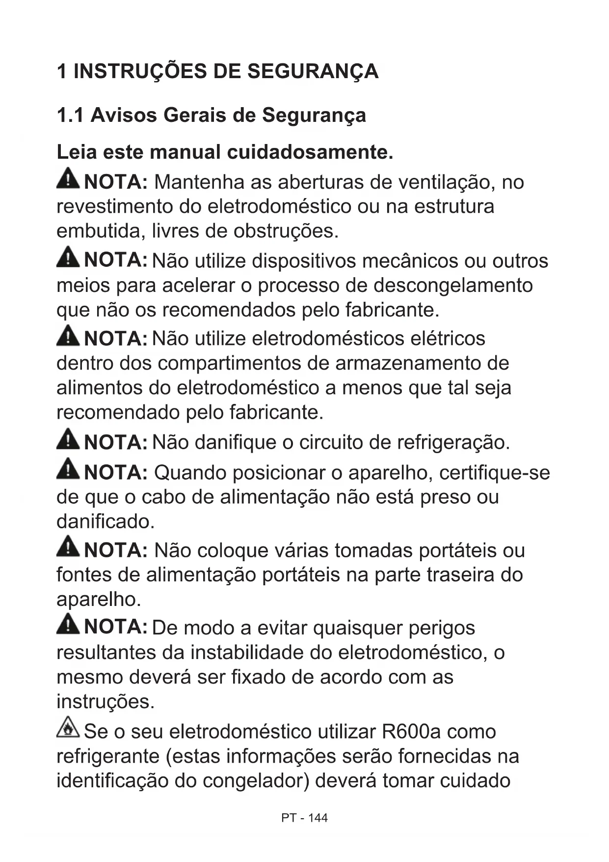 1 INSTRUÇÉS DE SEGURANÇA 144