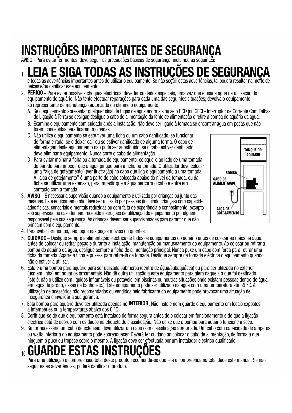 TANQUE DO AQUÁRIO BOMBA CABO DE ALIMENTAÇÃO ALÇA DE GOTEJAMENTOINTRODUÇÃO