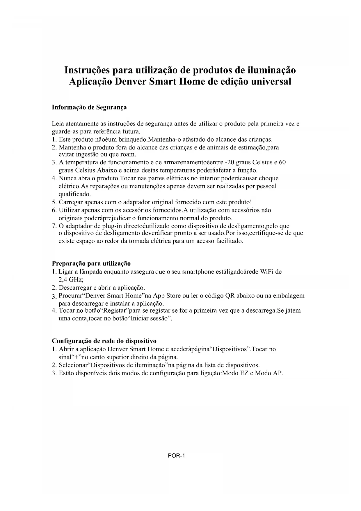 ITA-3POR-1 Instruções para utilização de produtos de iluminação Aplicação Denver Smart Home de edição universal Informação de Segurança Leia atentamente as instruções de segurança antes de utilizar o produto pela primeira vez e guarde-as para referência futura.