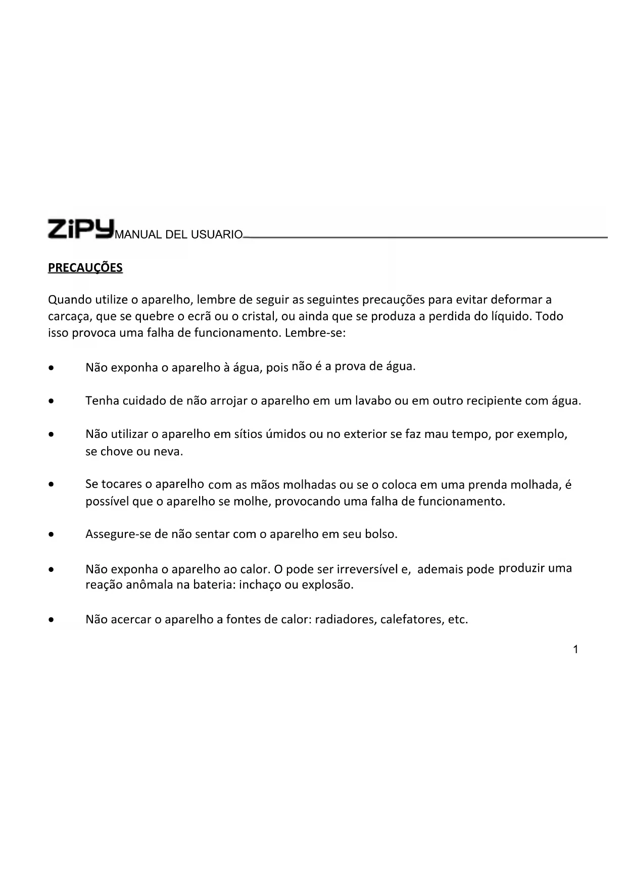 - Nãoacercaroaparelhoafontesdecalor:radiadores,calefatores,etc. ZIPY BIRD