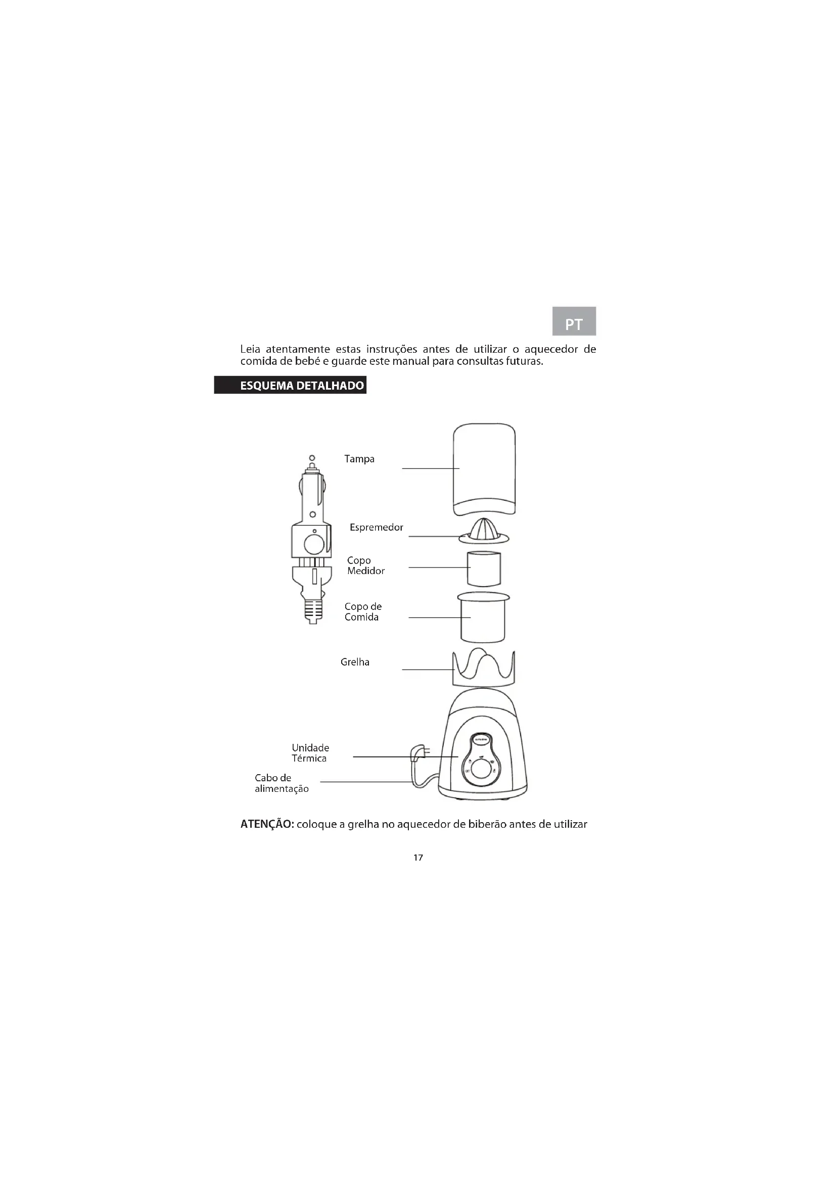 ATENÇAO: coloque a grelha no aquecedor de biberão antes de utilizes