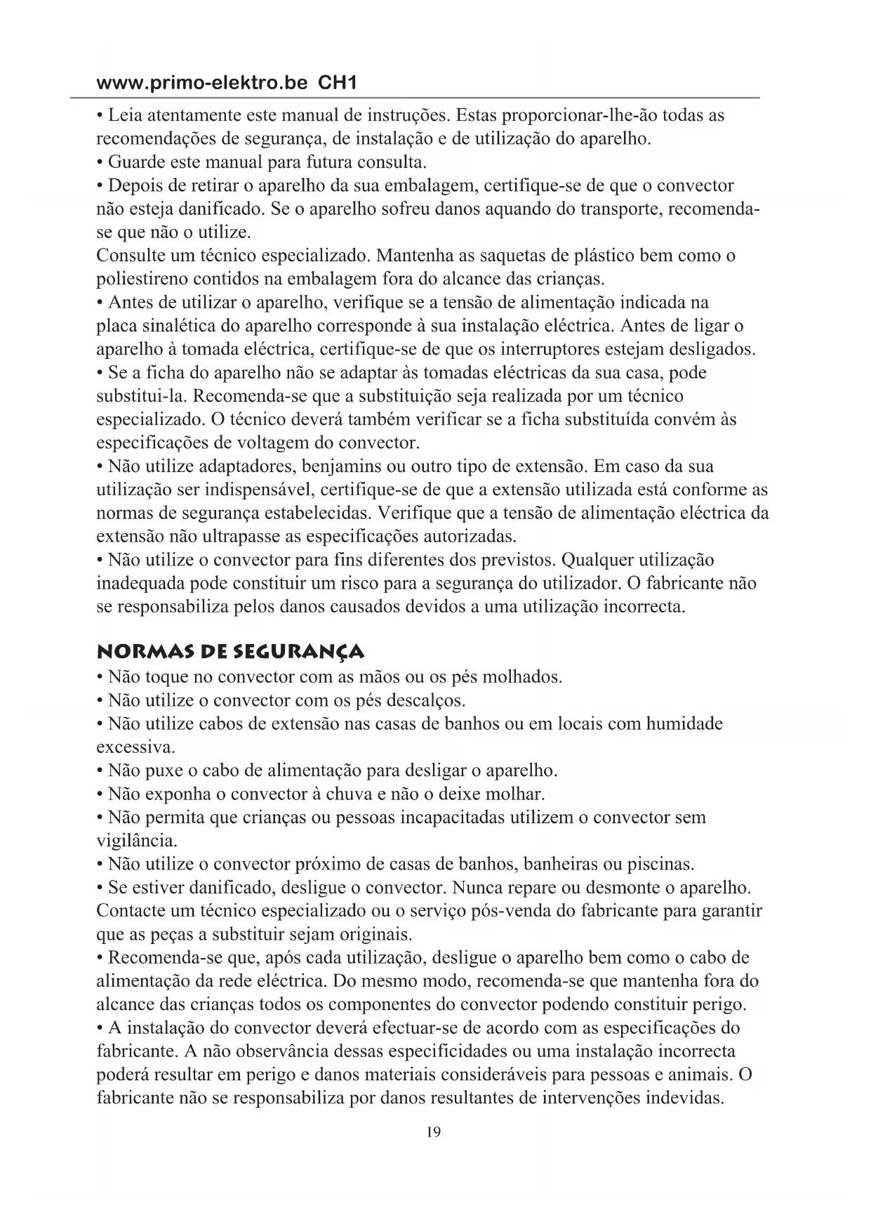 CH1 - Aquecedor elétrico PRIMO - Manual de utilização gratuito
