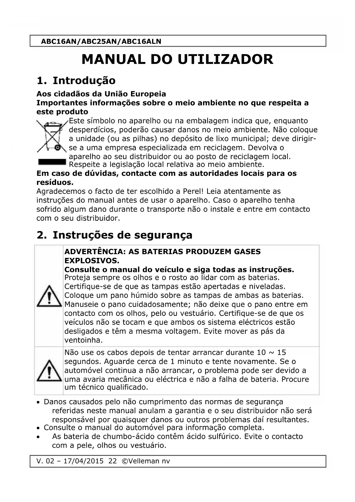 ABC16ALN - Cabos de arranque Perel - Manual de utilização gratuito