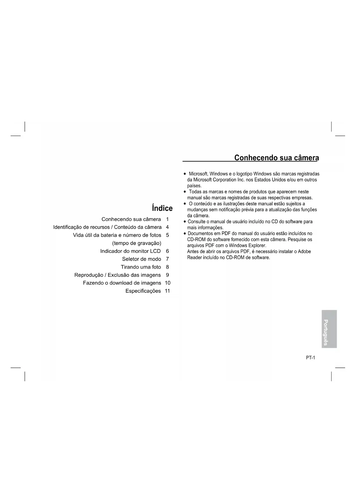 O conteúdo e as ilustrações deste manual estão sujeitos a mudanças sem noticação prévia para a atualização das funções da câmera.