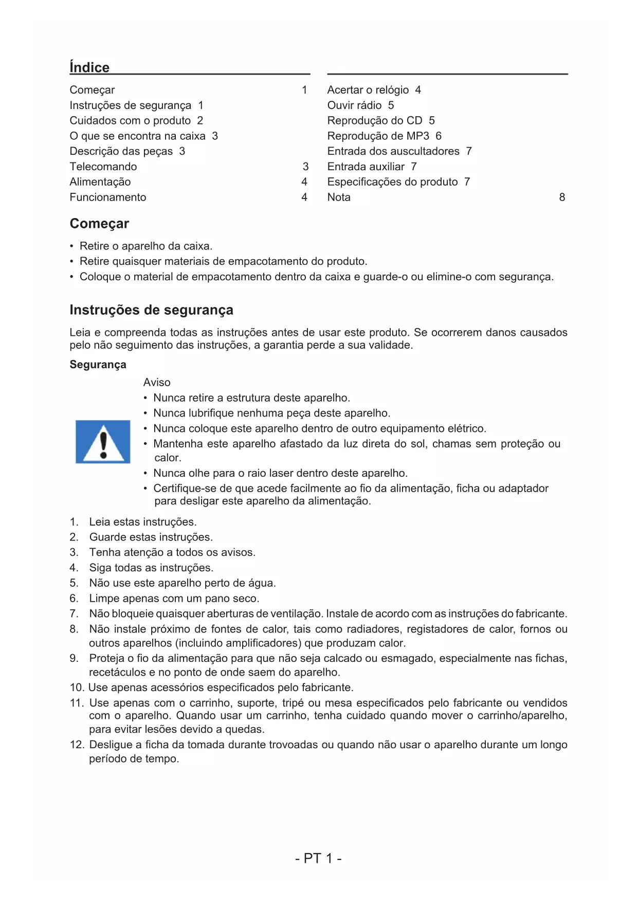 - Nunca olhe para o raio laser dentro deste aparelho.