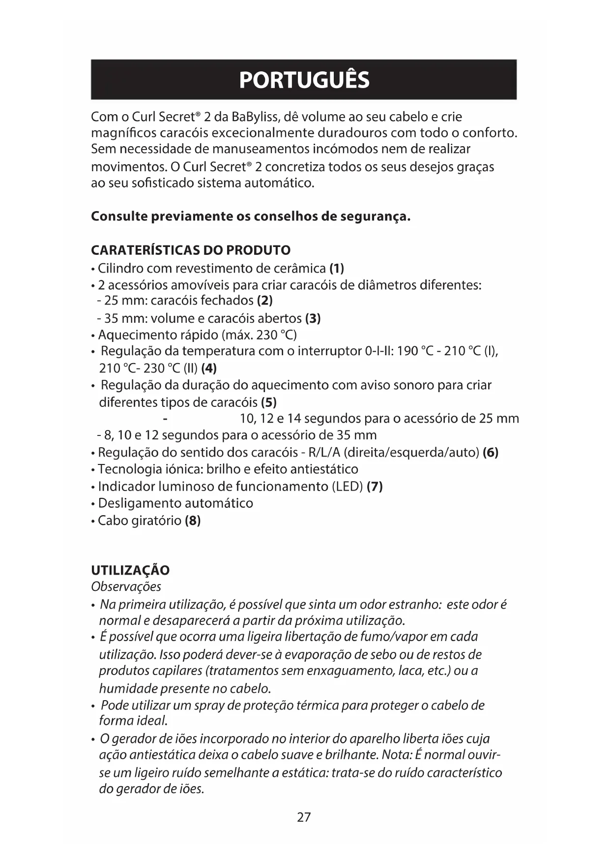 MANUAL DE UTILIZADOR Curl Secret C1300E BABYLISS