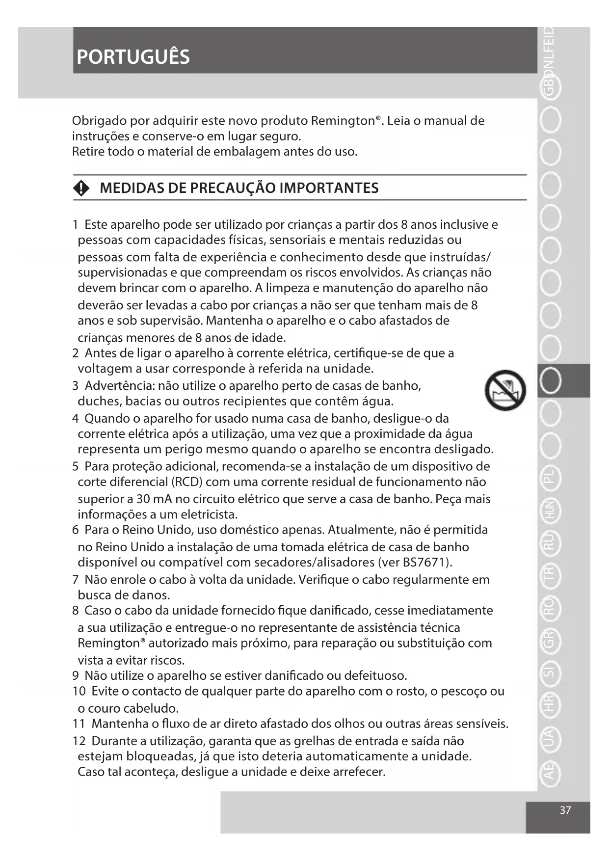 Obrigado por adquirir este novo produto Remington®. Leia o manual de instruções e conserve-o em lugar seguro.