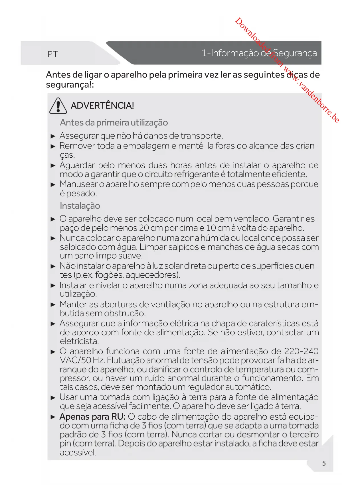 Downloaded from www.vandenborre.be1-Informação de Segurança