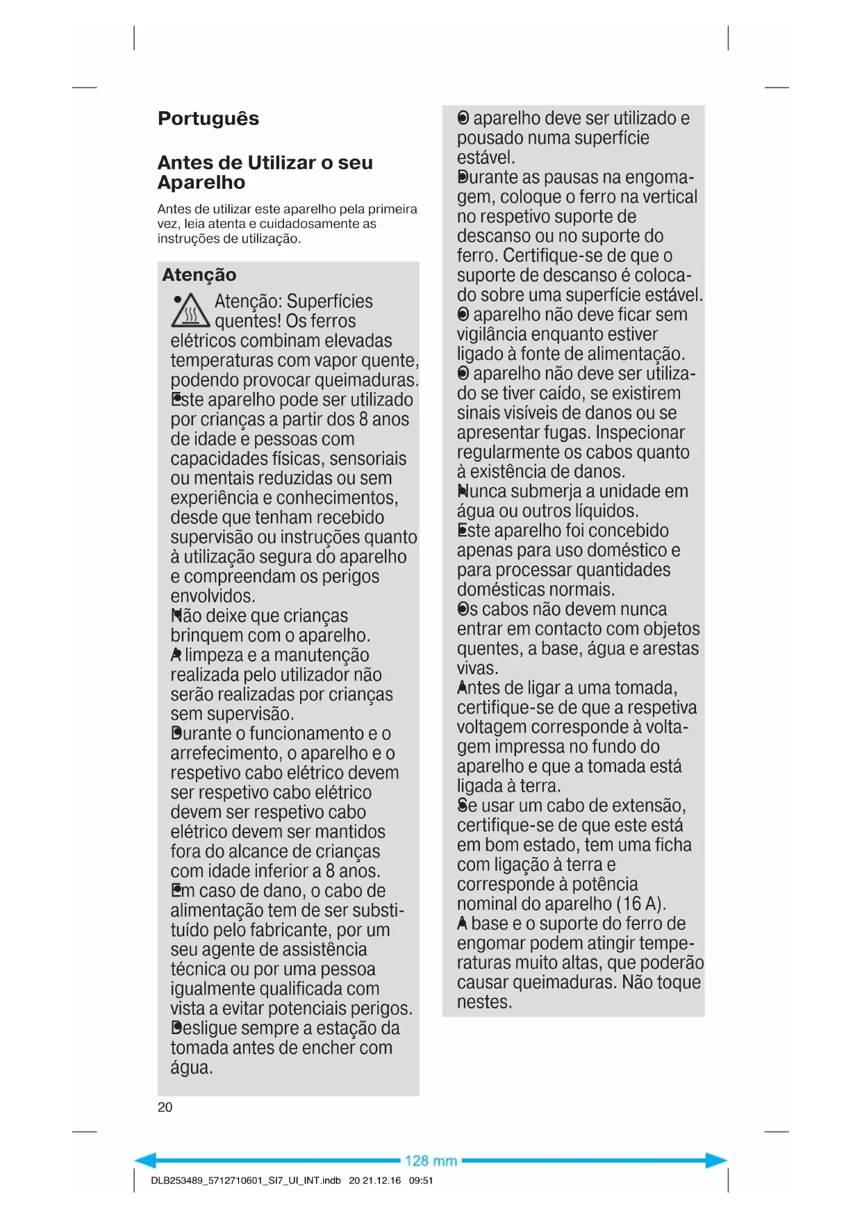 DLB253489_5712710601_SI7_UI_INT.indb 19 21.12.16 09:51Português Antes de Utilizar o seu Aparelho Antes de utilizar este aparelho pela primeira vez, leia atenta e cuidadosamente as instruções de utilização. Atenção