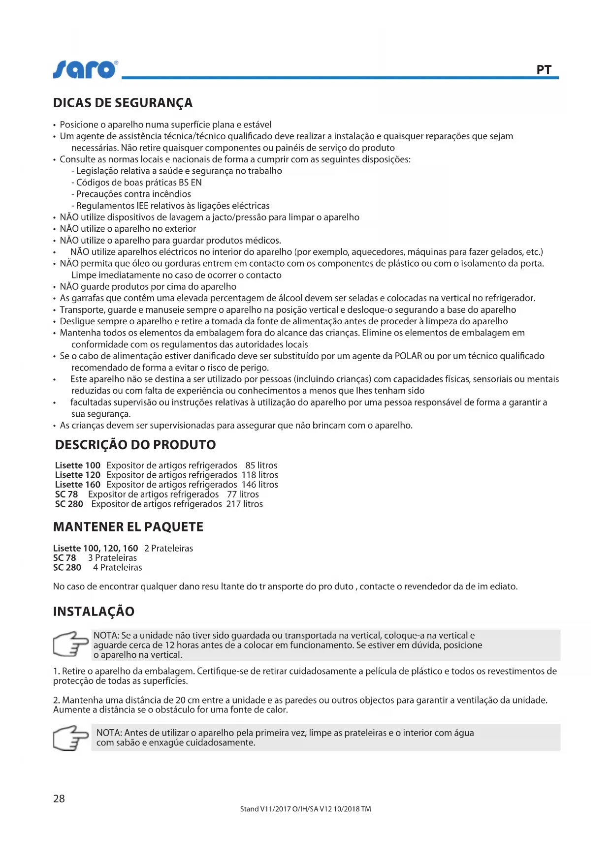 Baixe as instruções para o seu Geladeira em formato PDF gratuitamente! Encontre o seu manual LISETTE 120 - Saro e retome o controlo do seu dispositivo eletrónico. Nesta página estão publicados todos os documentos necessários para a utilização do seu dispositivo. LISETTE 120 da marca Saro.