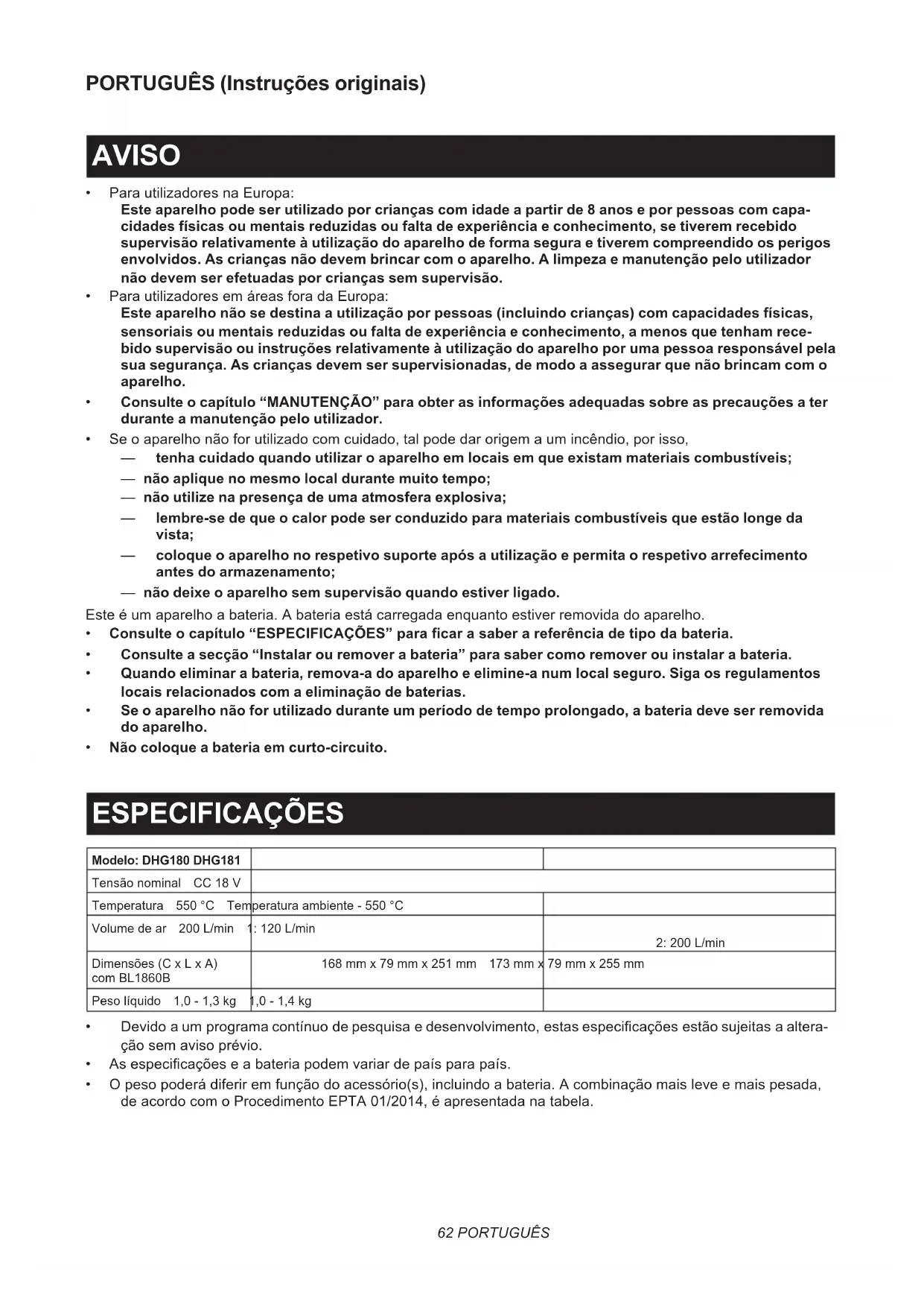 MANUAL DE UTILIZADOR DHG180 MAKITA