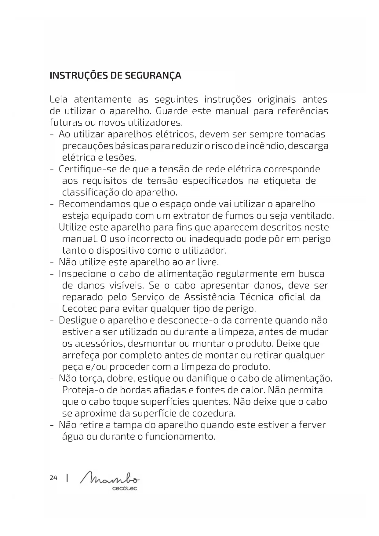 Encontre gratuitamente o manual do aparelho Mambo 11090 Habana CECOTEC em formato PDF.