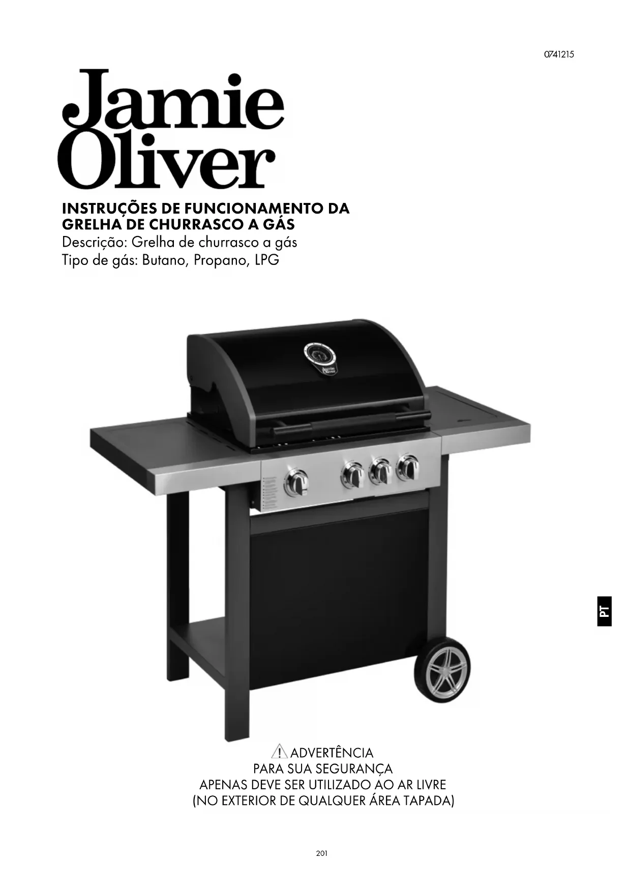 Leia atentamente estas instruções e certifique-se de que o seu churrasco é corretamente instalado, montado, mantido e reparado de acordo com estas instruções. O não cumprimento destas instruções pode resultar em lesões corporais graves e/ou danos materiais. Se tiver qualquer dúvida sobre a montagem ou funcionamento deste churrasco, por favor consulte o representante, o fornecedor de gás, o fabricante, o agente ou consulte: www.jamieoliverbbq.com para obter assistência. Notas para o utilizador: “APENAS PARA UTILIZAÇÃO NO EXTERIOR”. “LEIA AS INSTRUÇÕES ANTES DE USAR O CHURRASCO”. “ADVERTÊNCIA: as partes acessíveis podem FICAR MUITO quenteS. MANTEr AS CRIANÇAS AFASTADAS.” “NÃO DESLOCAR O CHURRASCO DURANTE O USO”. “DESLIGAR O fornecimento de gás NA BOTIJA DO GÁS após o uso.”