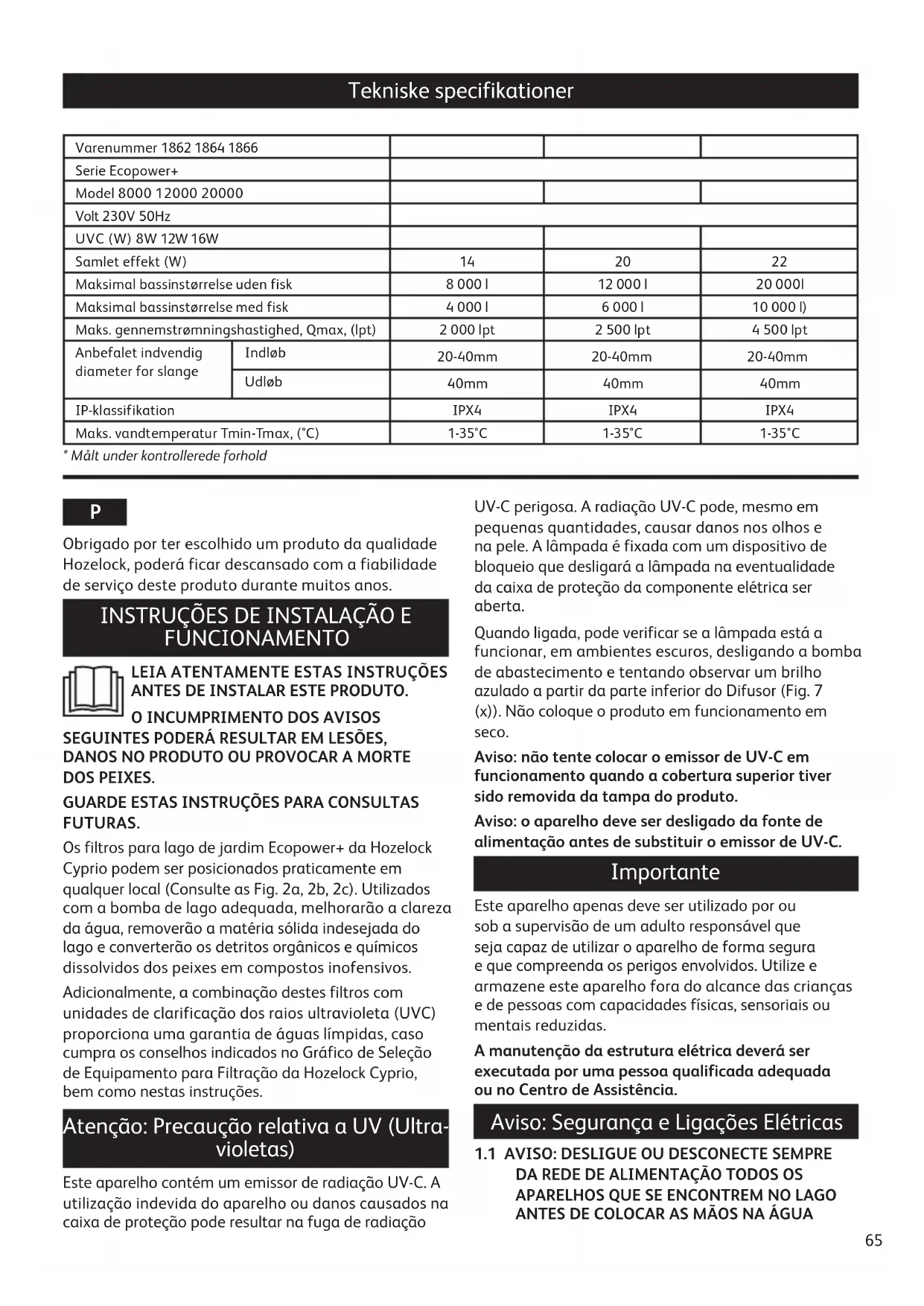 Adicionalmente, a combinação destes filtros com unidades de clarificação dos raios ultravioleta (UVC) proporciona uma garantia de águas límpidas, caso cumpra os conselhos indicados no Gráfico de Seleção de Equipamento para Filtração da Hozelock Cyprio, bem como nestas instruções.