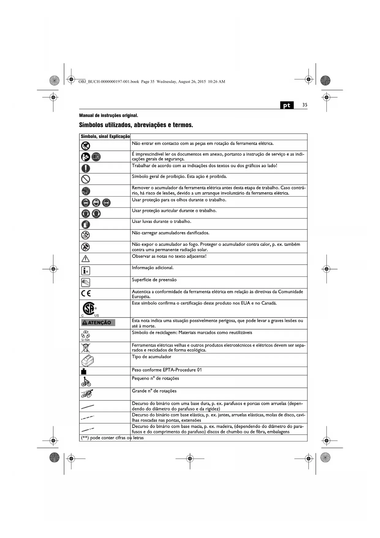 Documentação técnica em: C. & E. Fein GmbH, C-DB_IA, D-73529 Schwäbisch Gmünd
