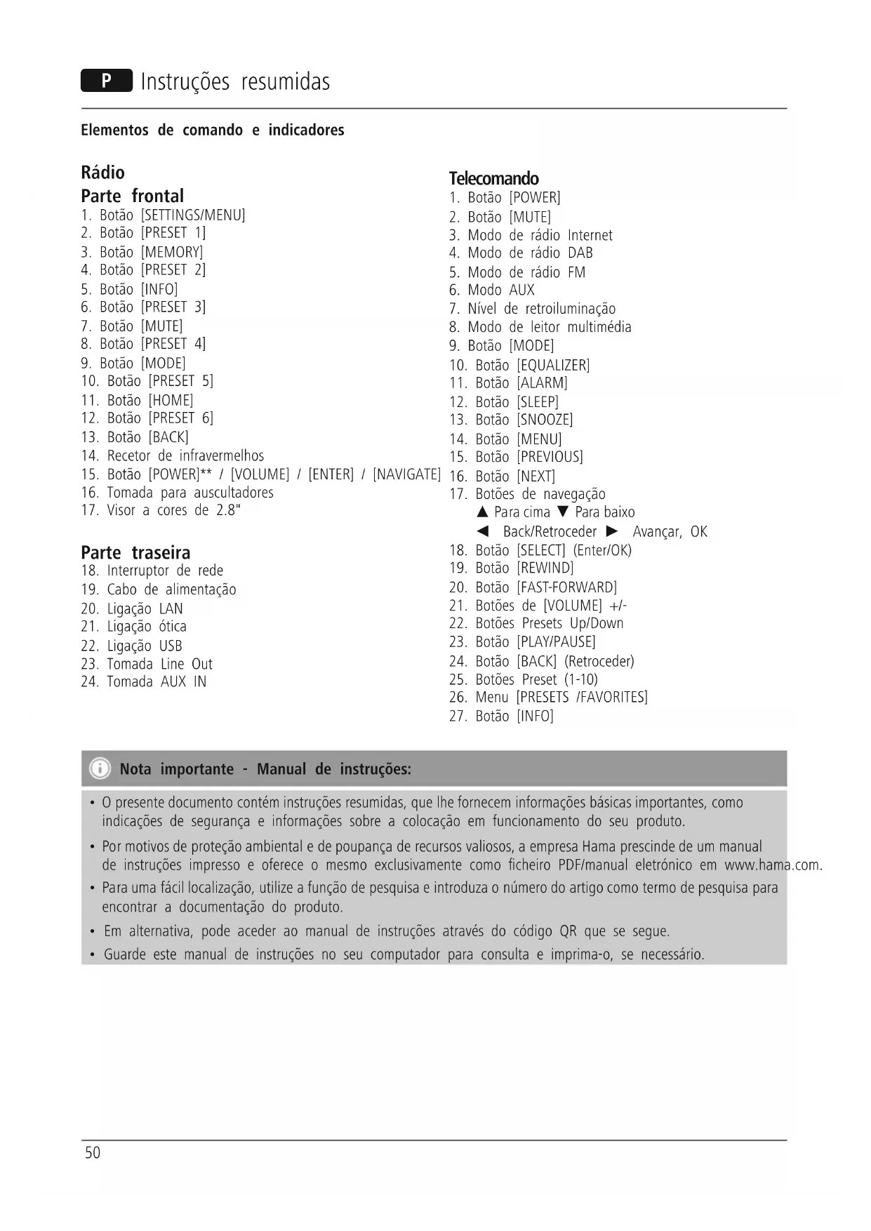 - Por motivos de proteção ambiental e de poupança de recursos valiosos, a empresa Hama prescinde de um manual de instruções impresso e oferece o mesmo exclusivamente como cheiro PDF/manual eletrónico em www.hama.com.