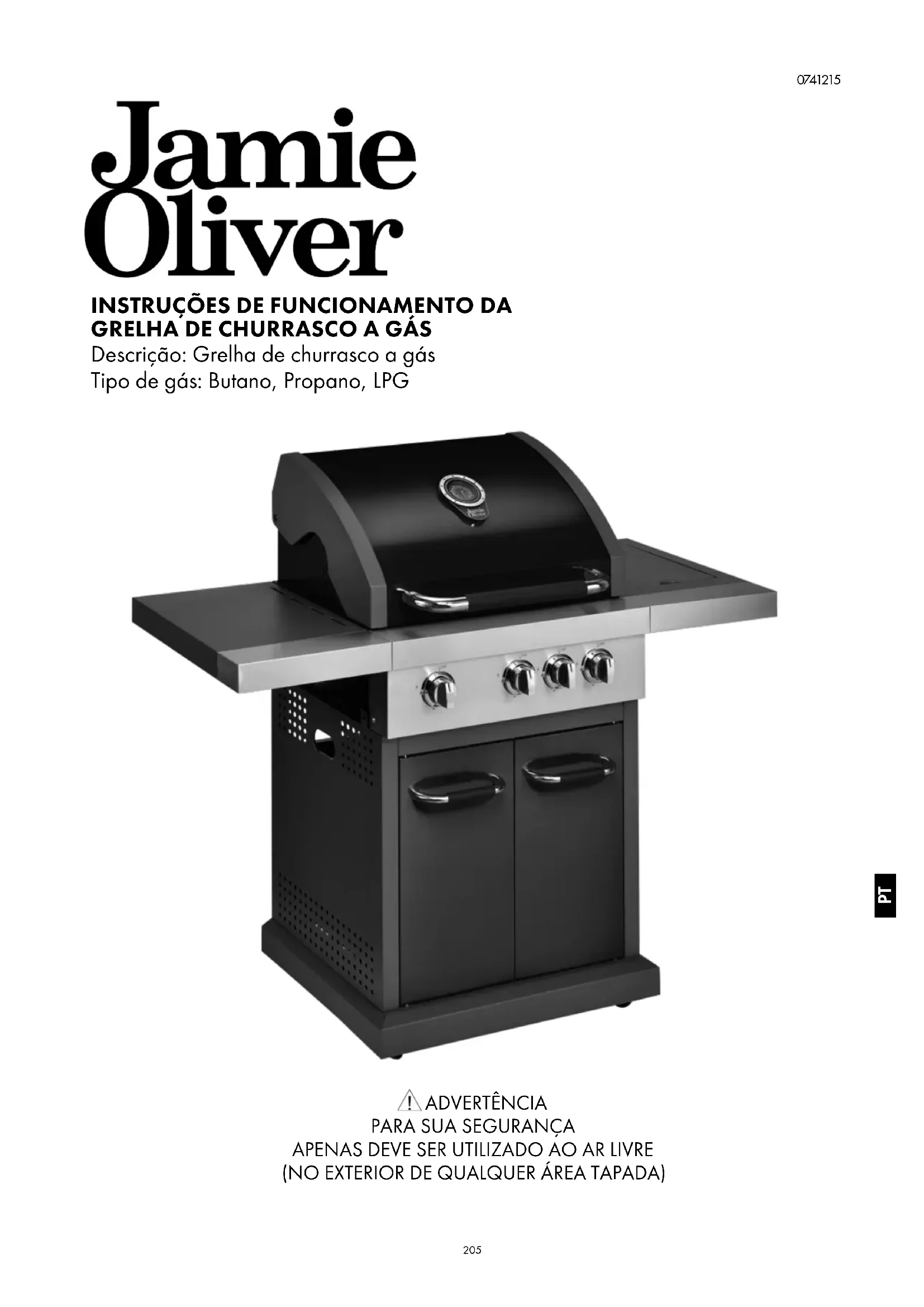 Leia atentamente estas instruções e certifique-se de que o seu churrasco é corretamente instalado, montado, mantido e reparado de acordo com estas instruções. O não cumprimento destas instruções pode resultar em lesões corporais graves e/ou danos materiais. Se tiver qualquer dúvida sobre a montagem ou funcionamento deste churrasco, por favor consulte o representante, o fornecedor de gás, o fabricante, o agente ou consulte: www.jamieoliverbbq.com para obter assistência. Notas para o utilizador: “APENAS PARA UTILIZAÇÃO NO EXTERIOR”. “LEIA AS INSTRUÇÕES ANTES DE USAR O CHURRASCO”. “ADVERTÊNCIA: as partes acessíveis podem FICAR MUITO quenteS. MANTEr AS CRIANÇAS AFASTADAS.” “NÃO DESLOCAR O CHURRASCO DURANTE O USO”. “DESLIGAR O fornecimento de gás NA BOTIJA DO GÁS após o uso.”