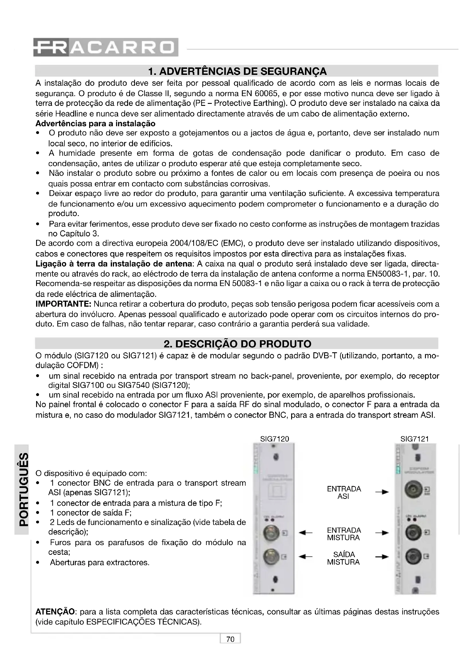 SIG7120 - Modulador digital FRACARRO - Manual de utilização gratuito