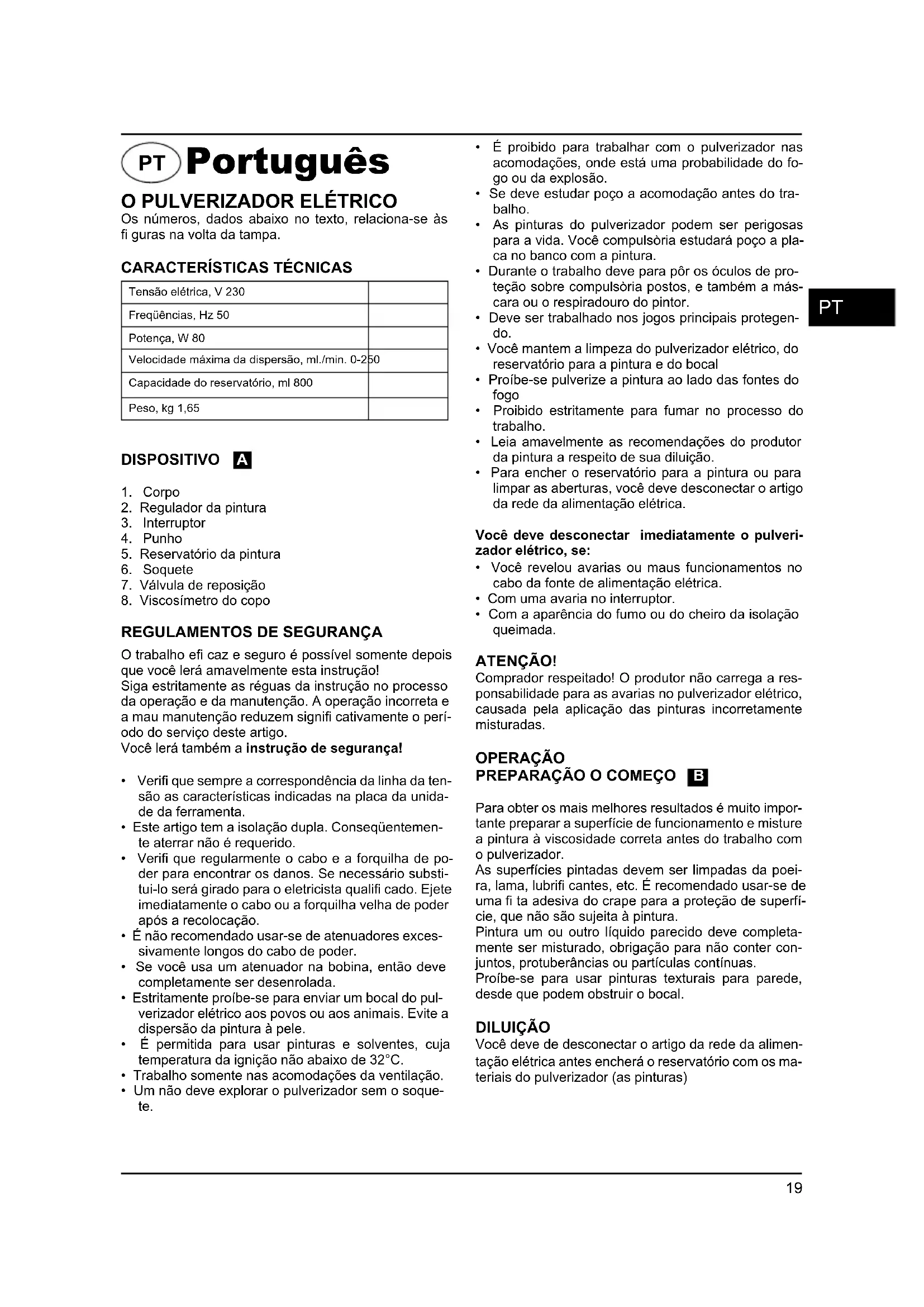 - Com a aparência do fumo ou do cheiro da isolação queimada. ATENÇÃO! Comprador respeitado! O produtor não carrega a res- ponsabilidade para as avarias no pulverizador elétrico, causada pela aplicação das pinturas incorretamente misturadas. OPERAÇÃO