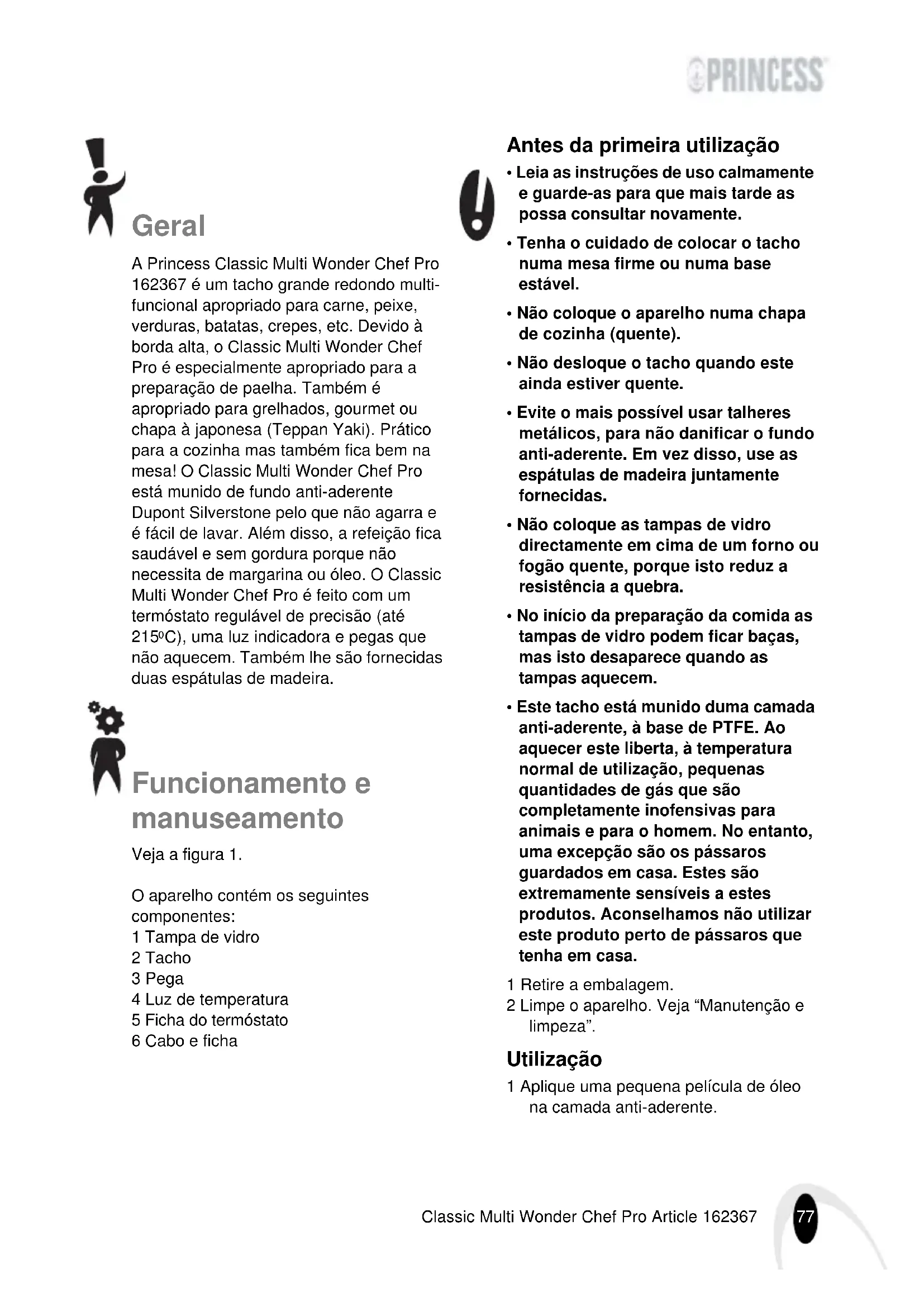 - Coloque o aparelho numa superfície plana e estável resistente a calor e a salpicos, num local de onde não possa cair. Princess_Classic_Chef_2267.book Page 80 Tuesday, December 19, 2006 12:15 PM81 Classic Multi Wonder Chef Pro Article 162367