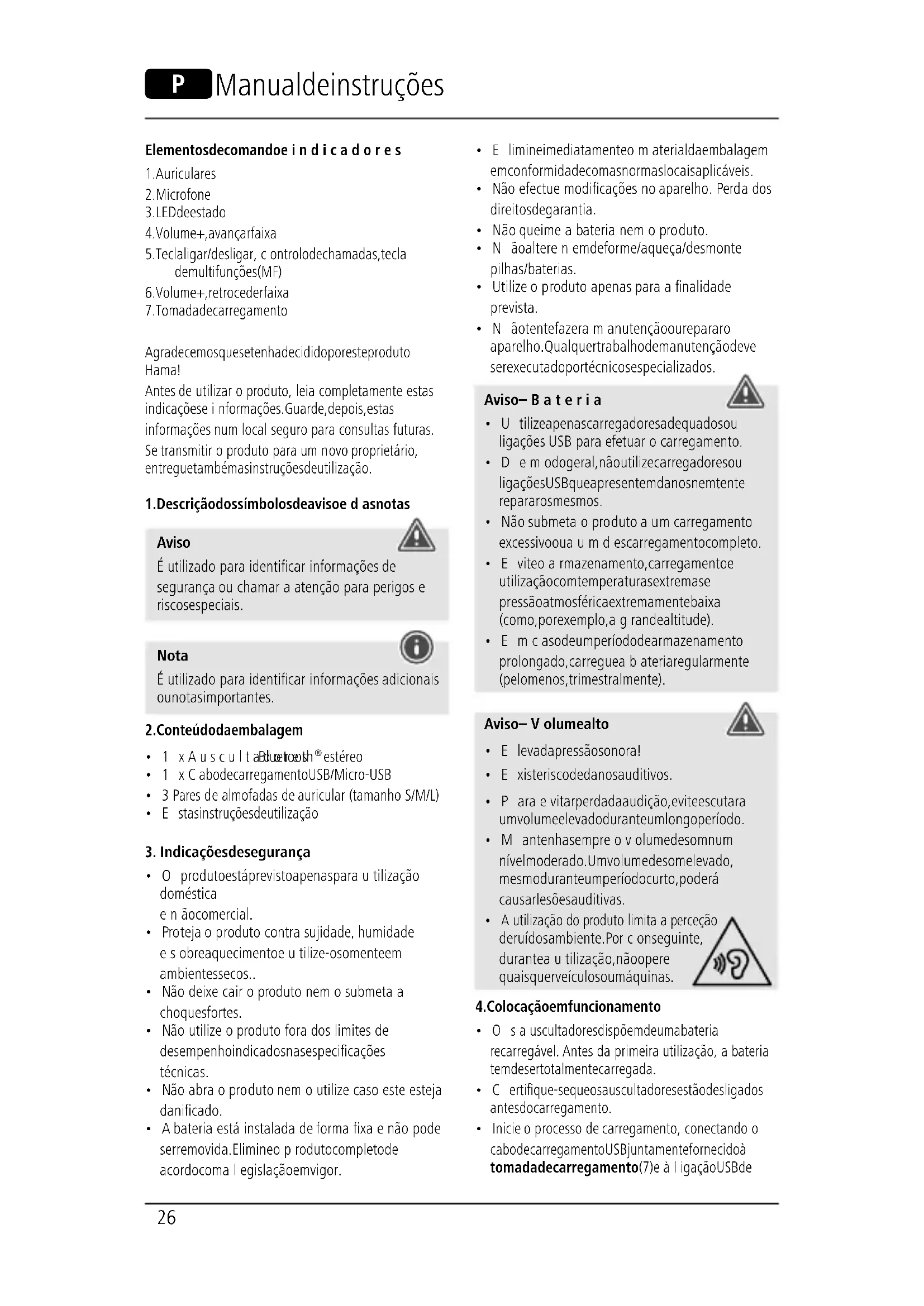 - Autilizaçãodoproduto limita aperceção de ruídos ambiente. Porconseguinte, durante autilização, não opere quaisquer veículos ou máquinas.