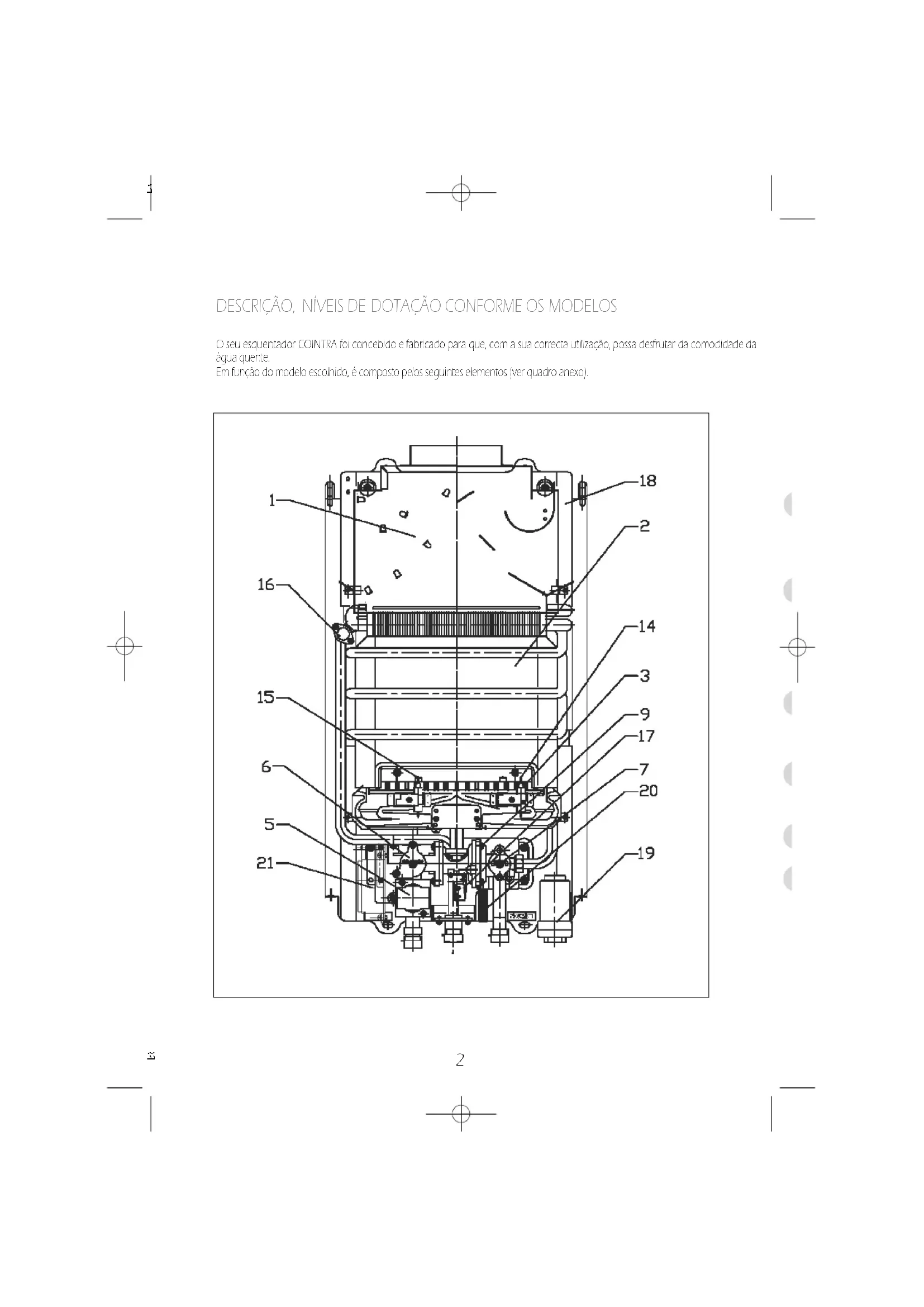 O seu esquentador COINTRA foi concebido e fabricado para que, com a sua correcta utilização, possa desfrutar da comodidade da água quente. Em função do modelo escolhido, é composto pelos seguintes elementos (ver quadro anexo).3