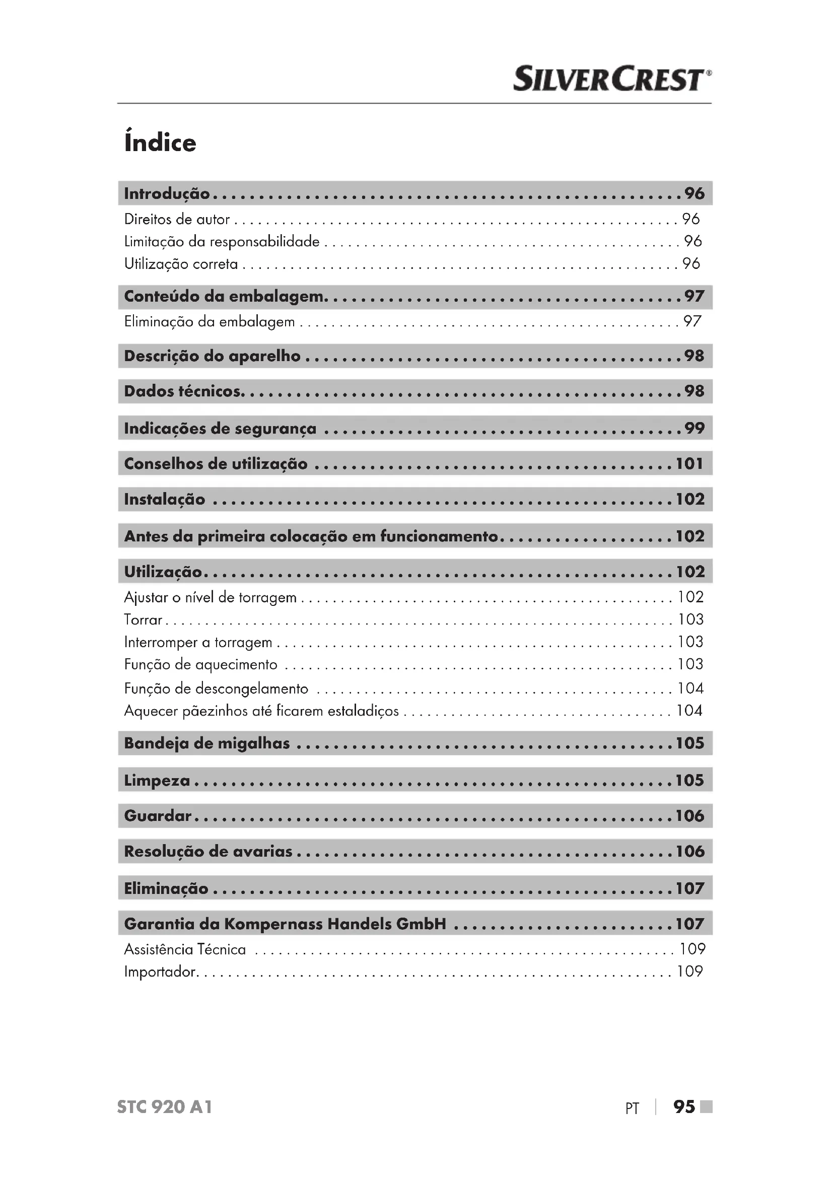 - 95 ■ STC 920 A1 Índice Introdução p. 96