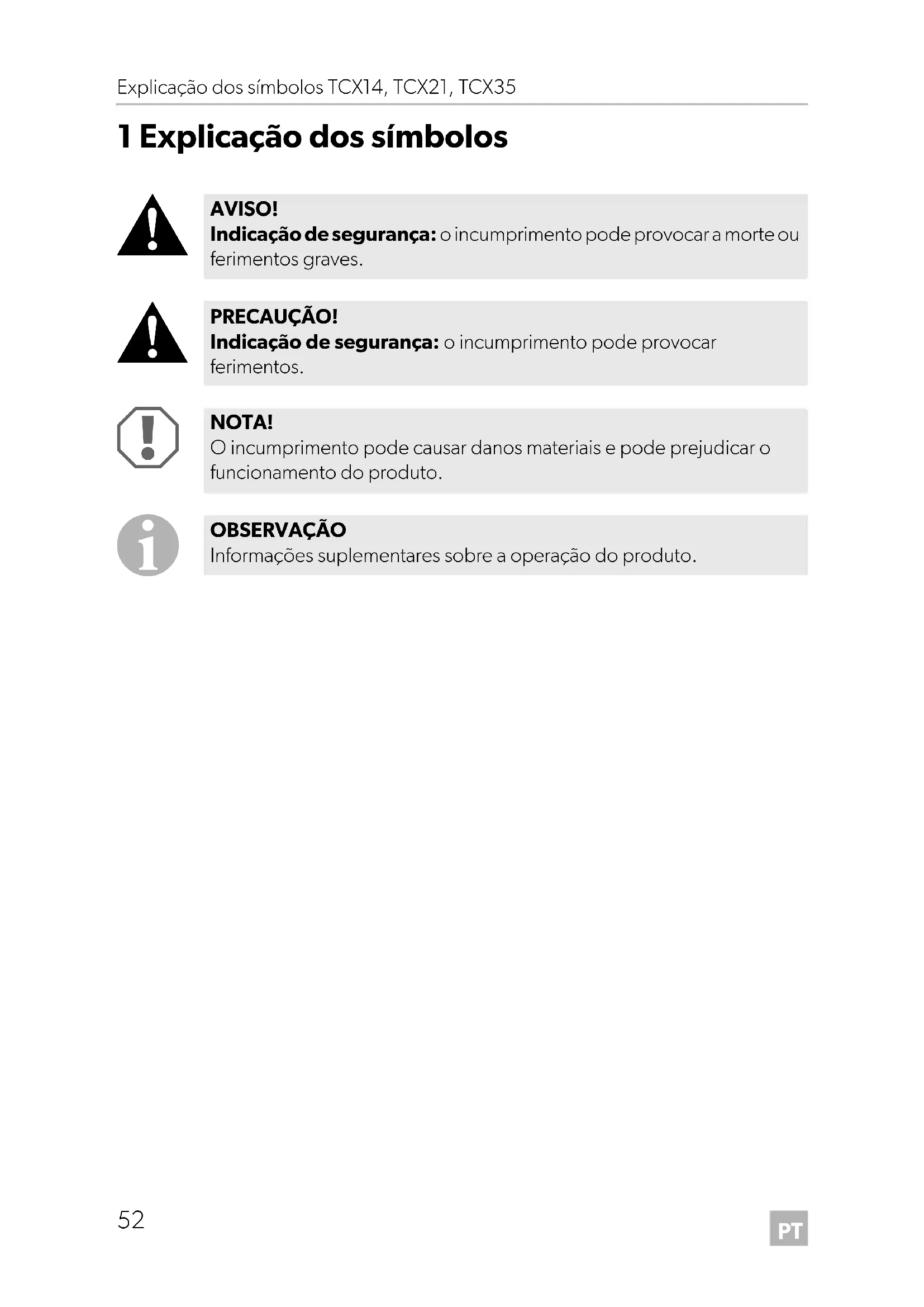 Indicação de segurança: o incumprimento pode provocar a morte ou ferimentos graves.