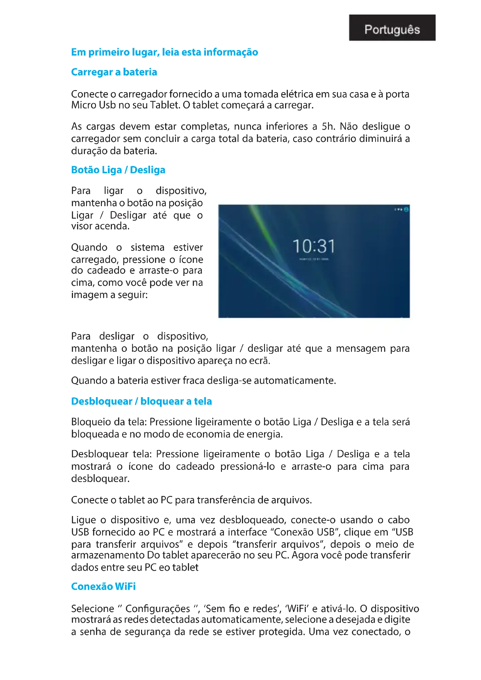 X103X - Tablet Billow - Manual de utilização gratuito