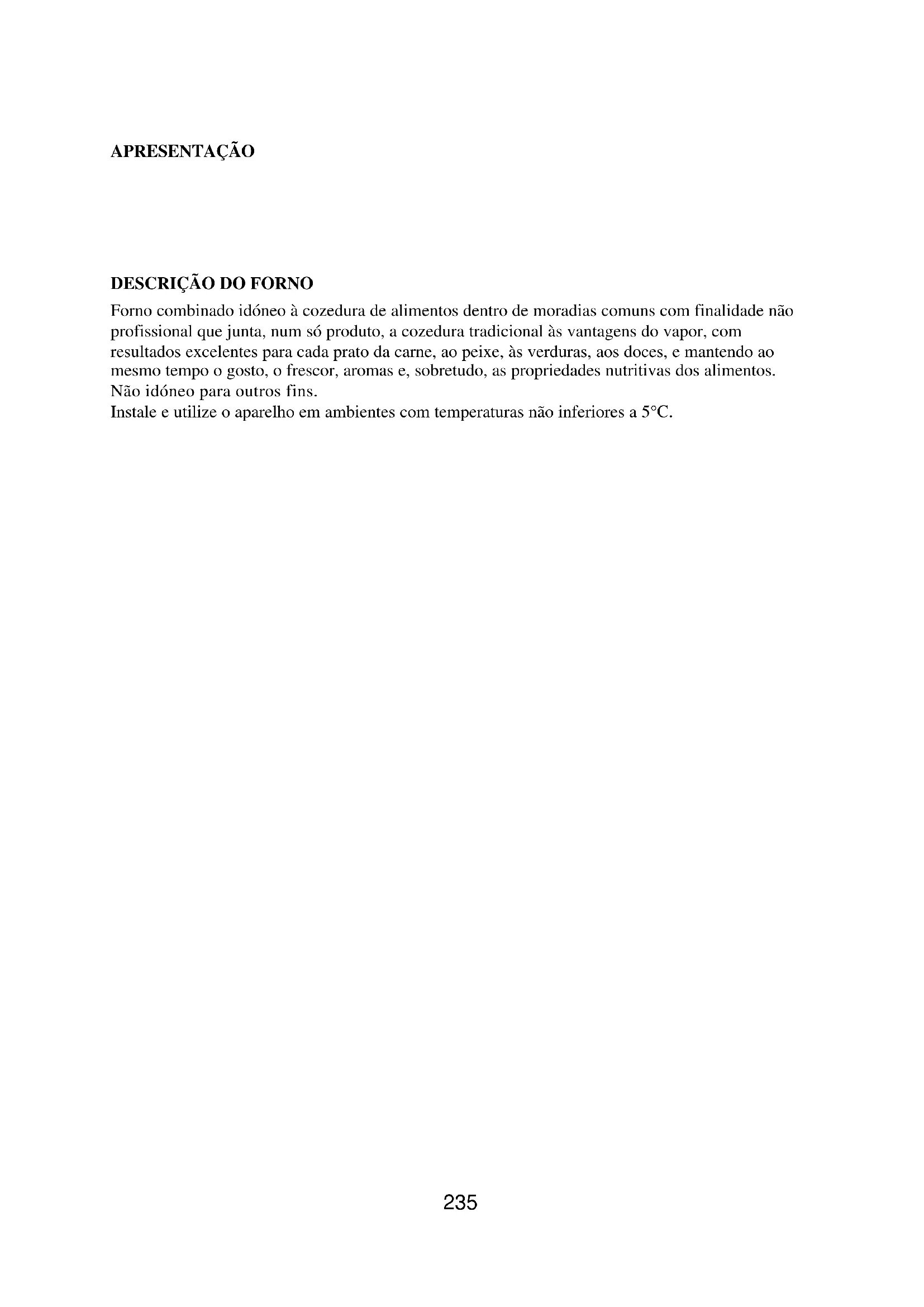 241DESCRIÇÃO DO FORNO E DOS ACESSÓRIOS