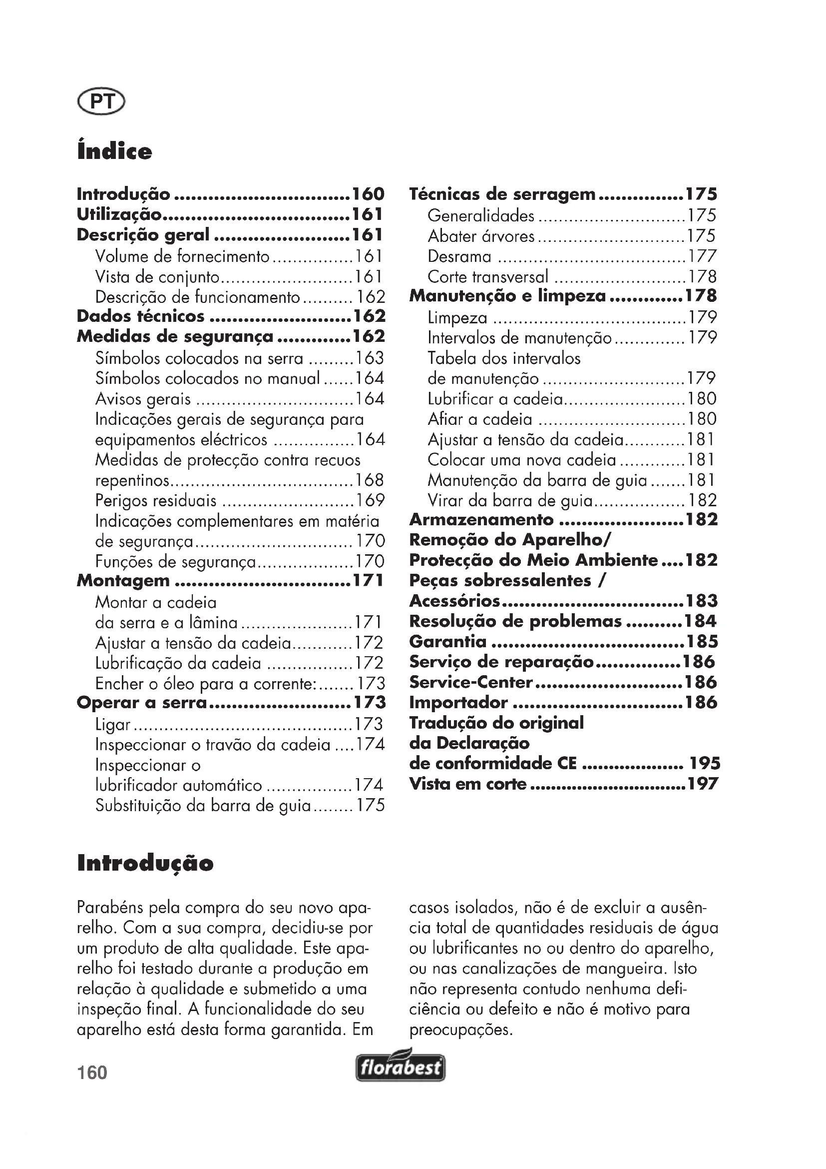 Índice Introdução ...............................160 Utilização