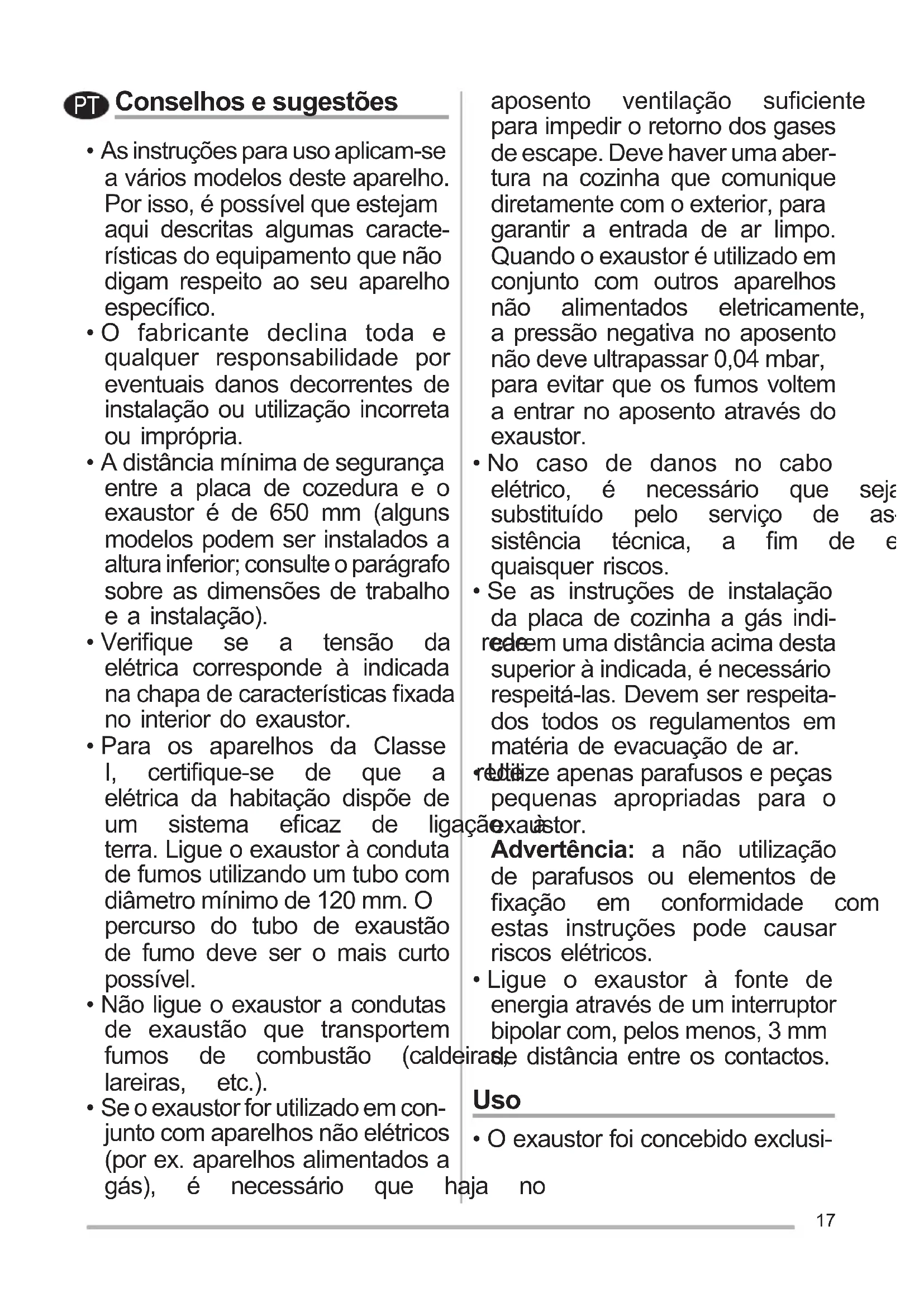 - O exaustor foi concebido exclusi- PT18 vamenteparausodoméstico,para eliminar os cheiros da cozinha.