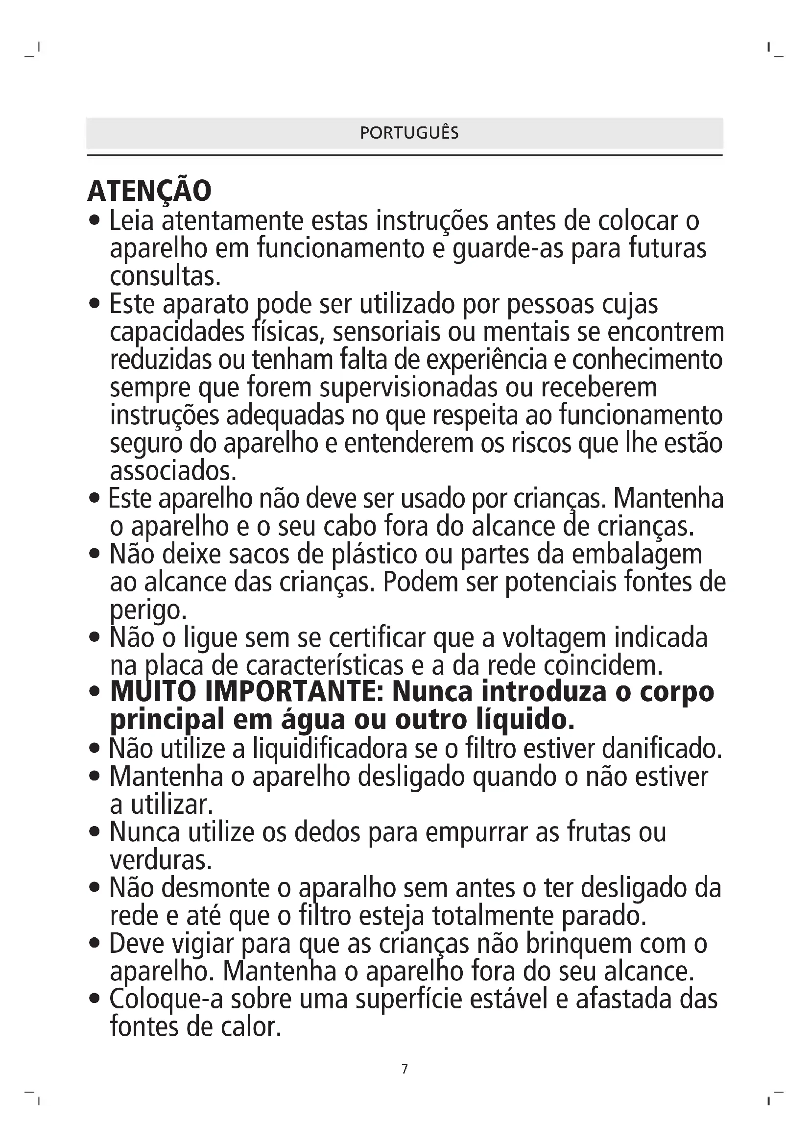- Este aparelho não deve ser usado por crianças. Mantenha o aparelho e o seu cabo fora do alcance de crianças.
