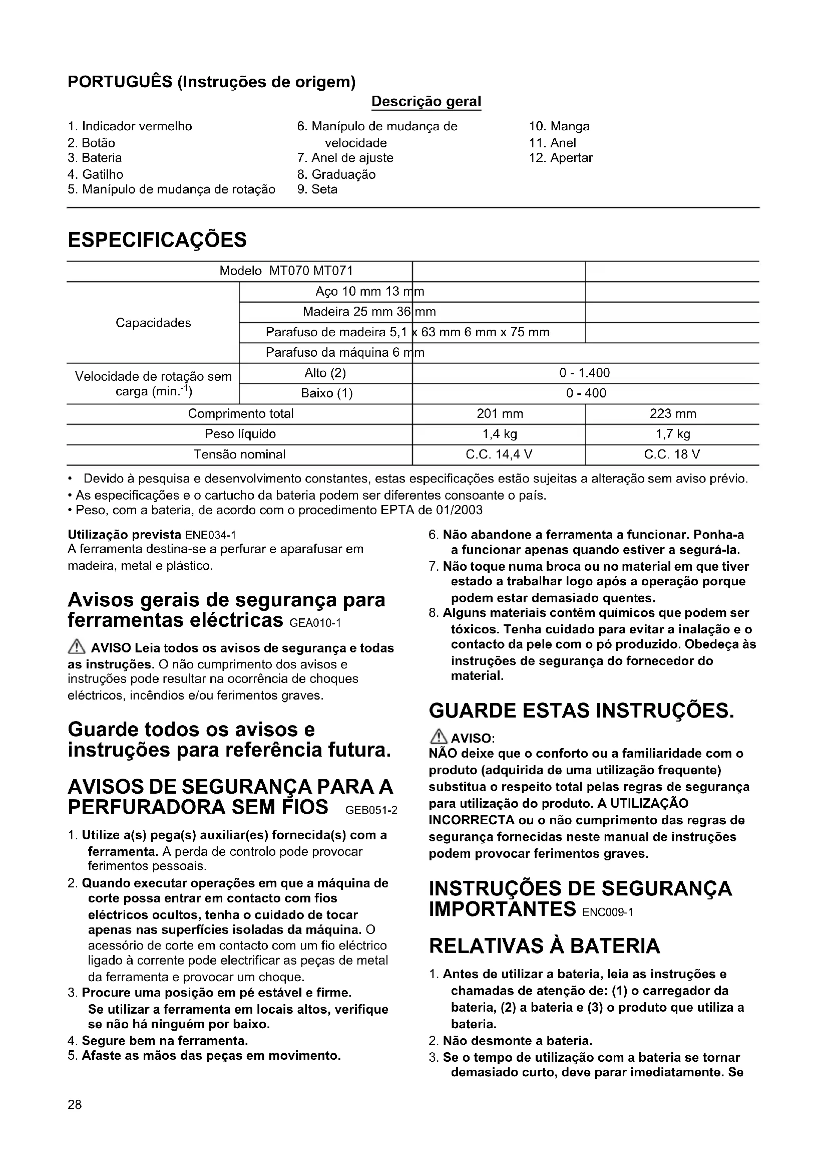 MANUAL DE UTILIZADOR MT071 Maktec