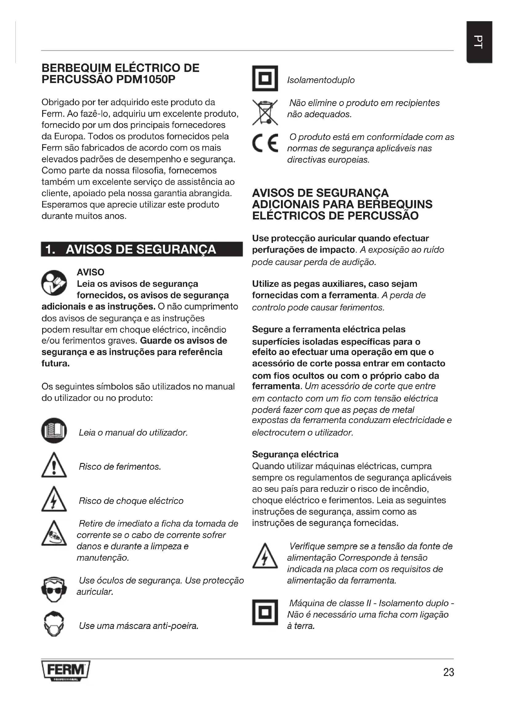 PDM1050P - Furadeira elétrica Ferm - Manual de utilização gratuito