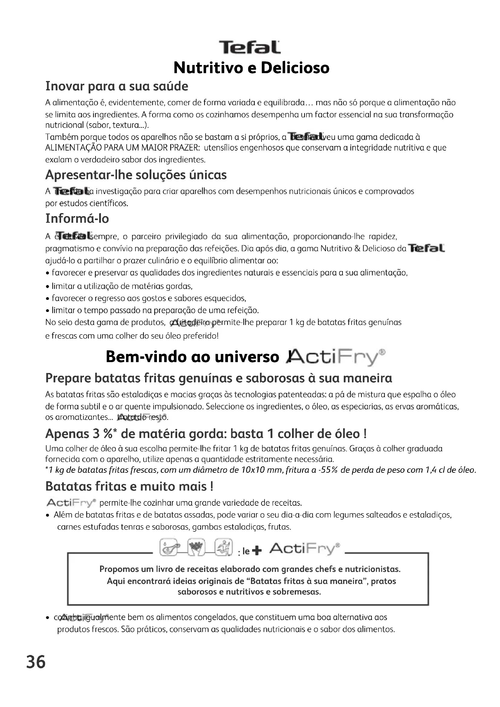 Encontre gratuitamente o manual do aparelho Actifry AL8002 TEFAL em formato PDF.