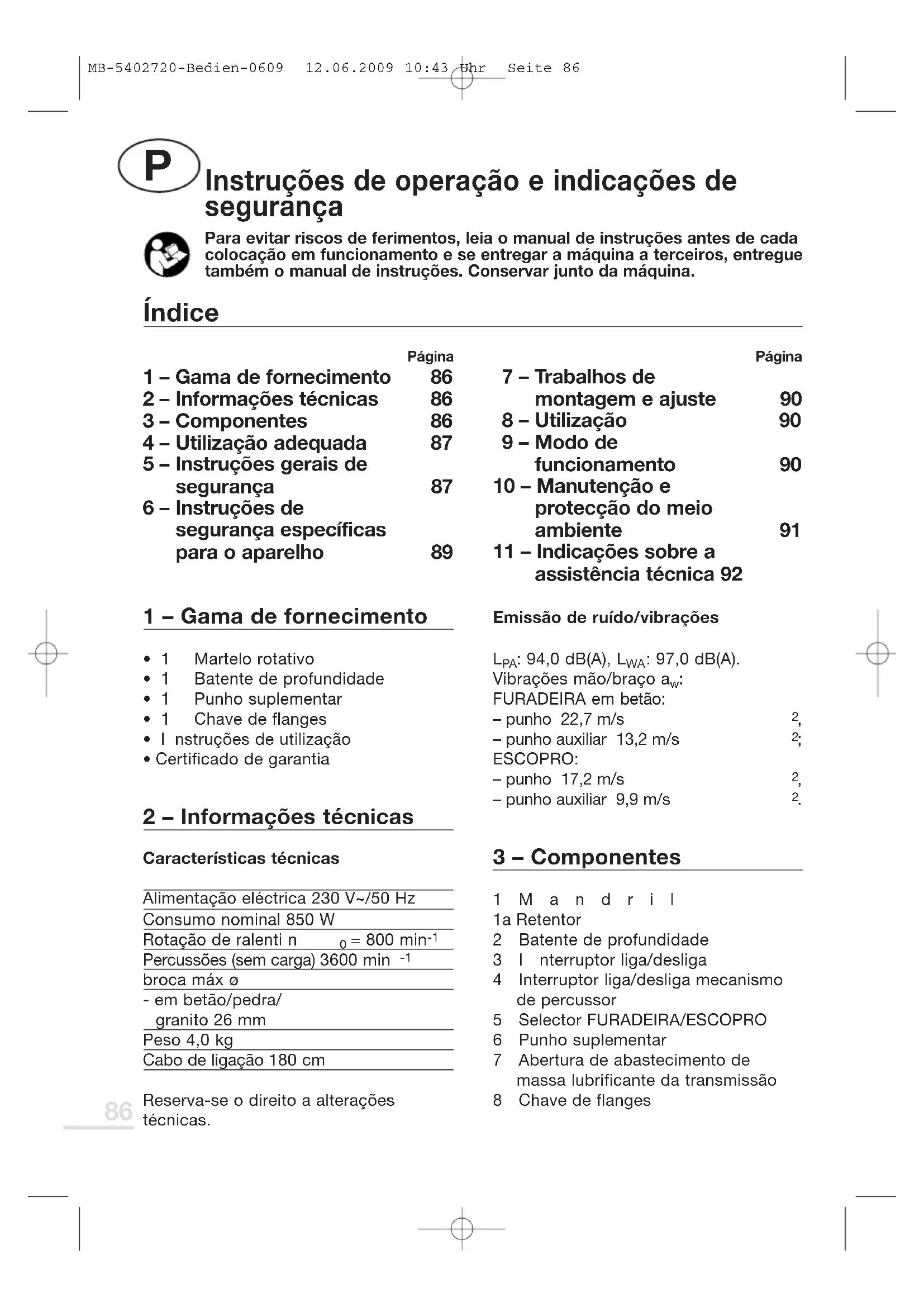 | 3 - Componentes | 86 | 8 - Utilização |