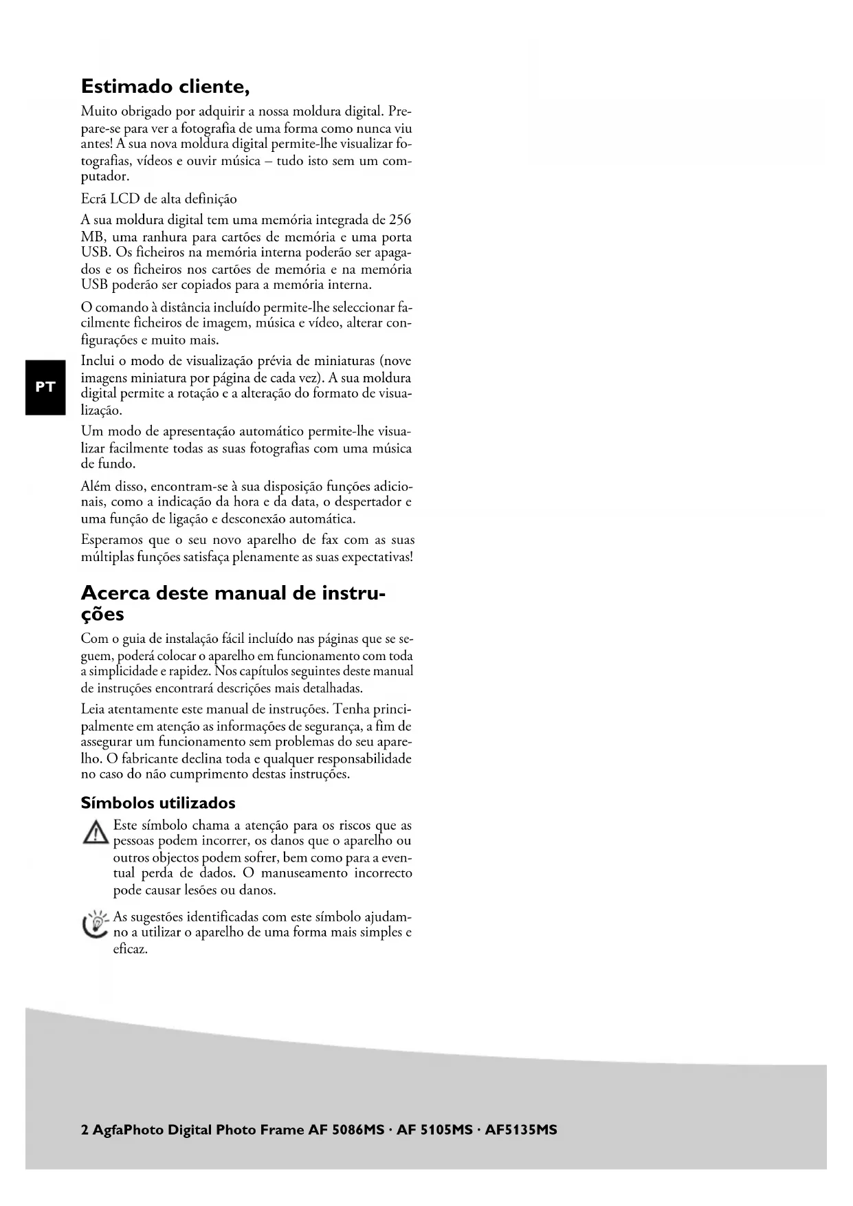 AF 5105MS - Moldura digital para fotos AGFA - Manual de utilização gratuito