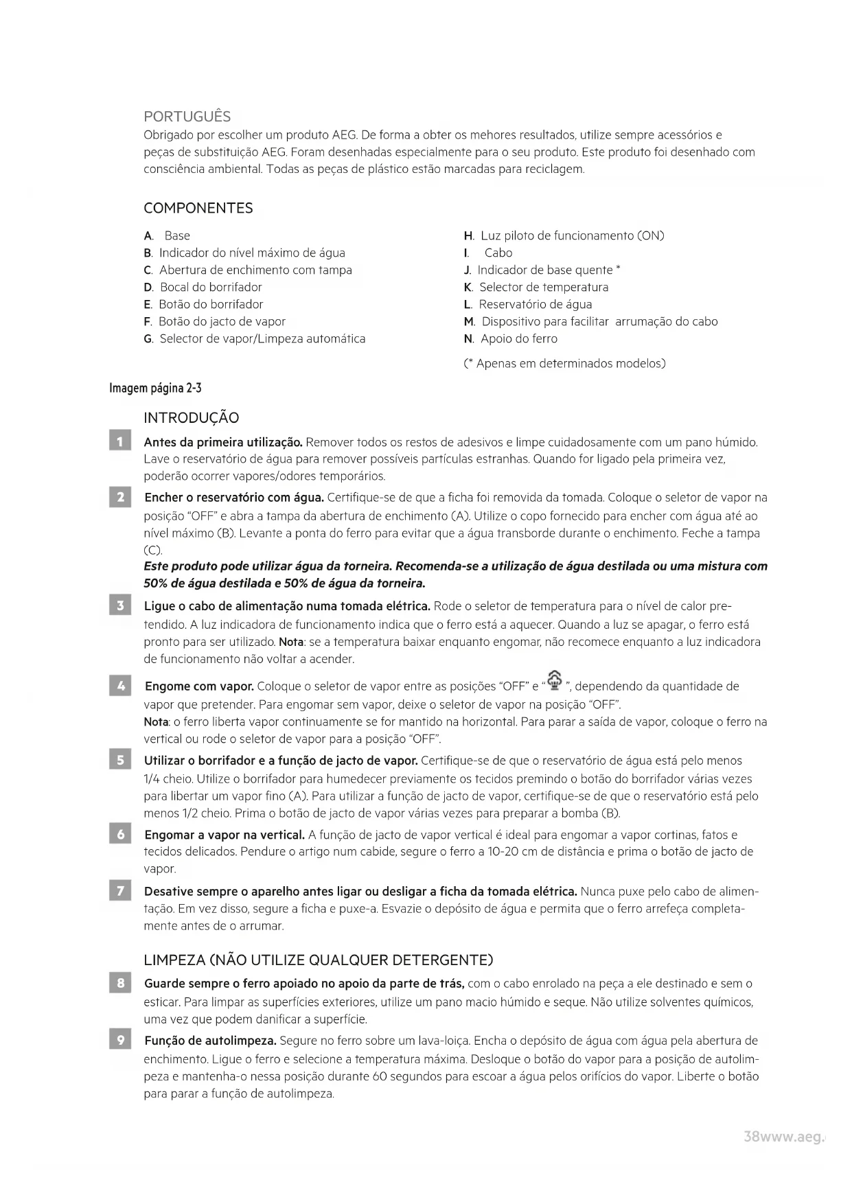 DB1720 - Ferro de passar AEG - Manual de utilização gratuito