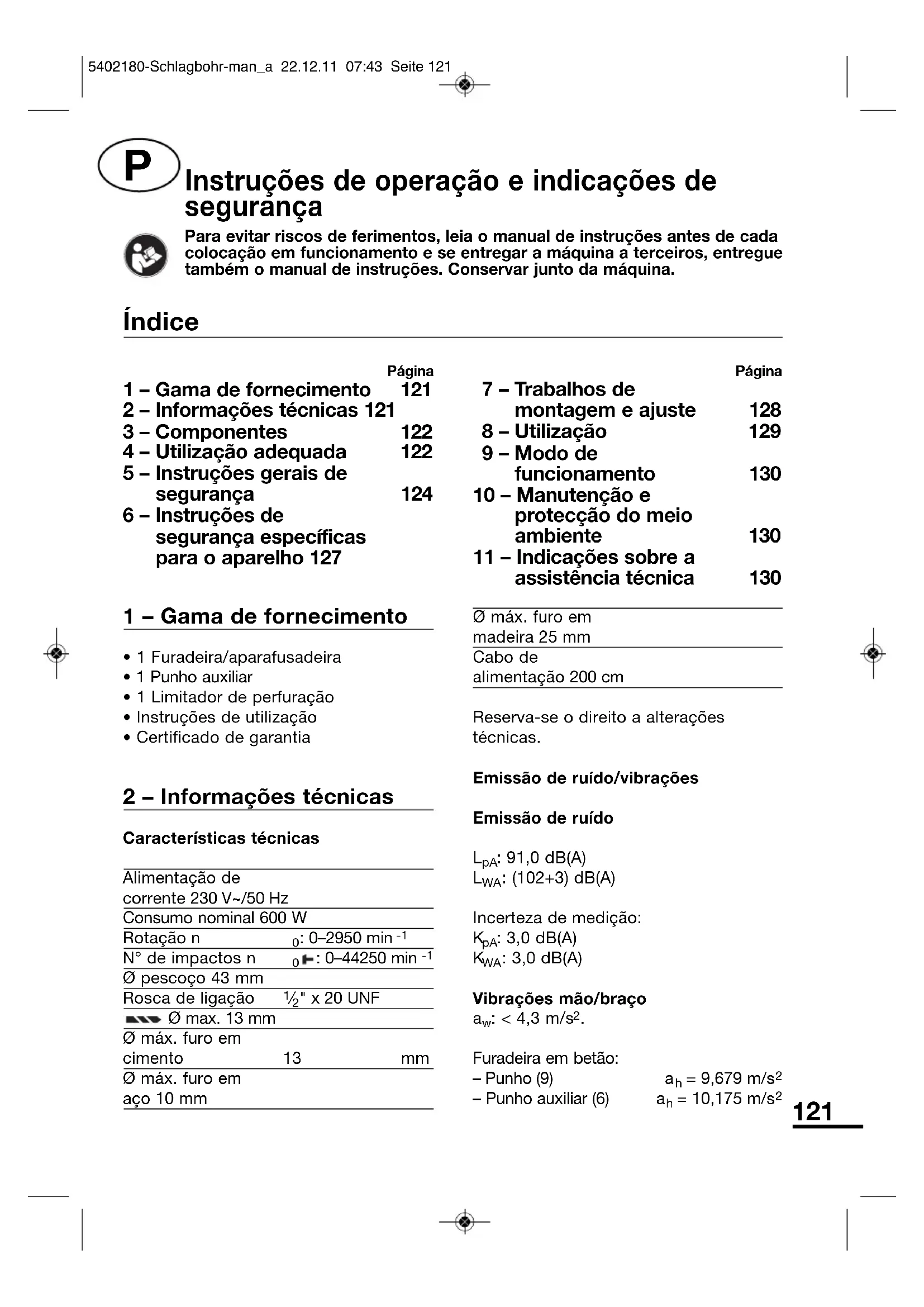 - O valor da emissão de vibrações indicado, foi medico por um método de ensaio normalizzato e pode ser aplicado com及其他 para comparação de uma ferramenta electrica.