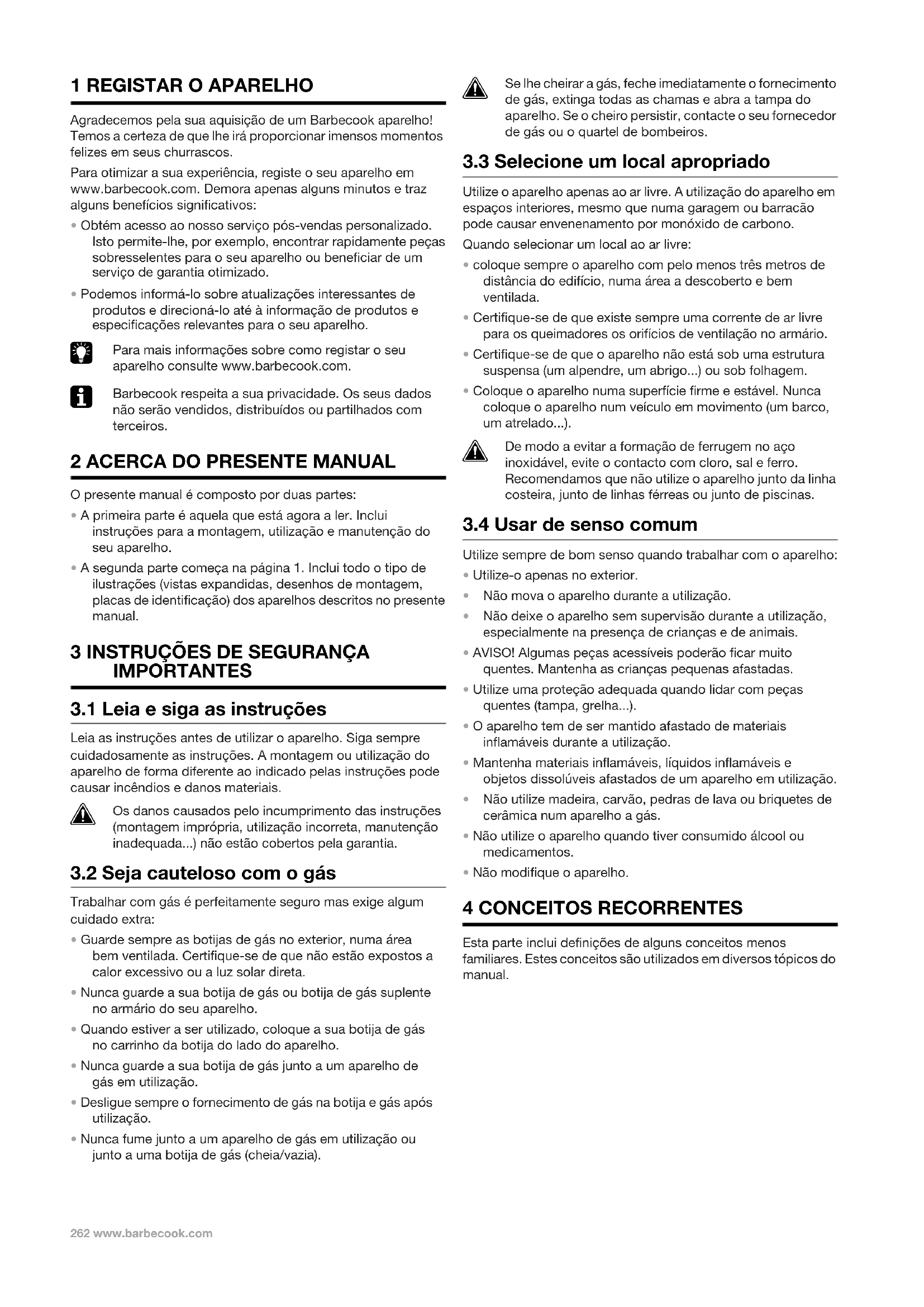 - Não modifique o aparelho. 4 CONCEITOS RECORRENTES Esta parte inclui definições de alguns conceitos menos familiares. Estes conceitos são utilizados em diversos tópicos do manual. !gas_quisson_standard.book Page 262 Tuesday, September 2, 2014 2:13 PMwww.barbecook.com 263