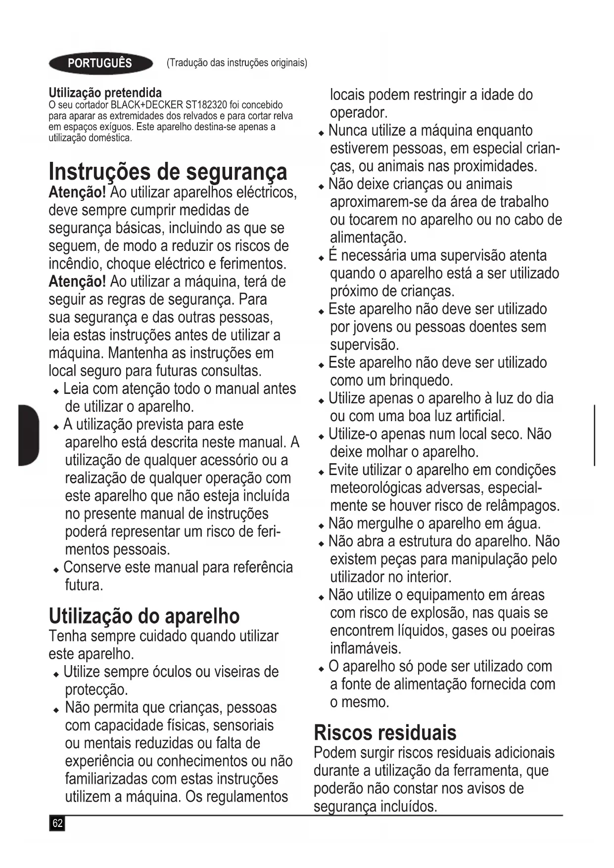 MANUAL DE UTILIZADOR ST182320 BLACK & DECKER