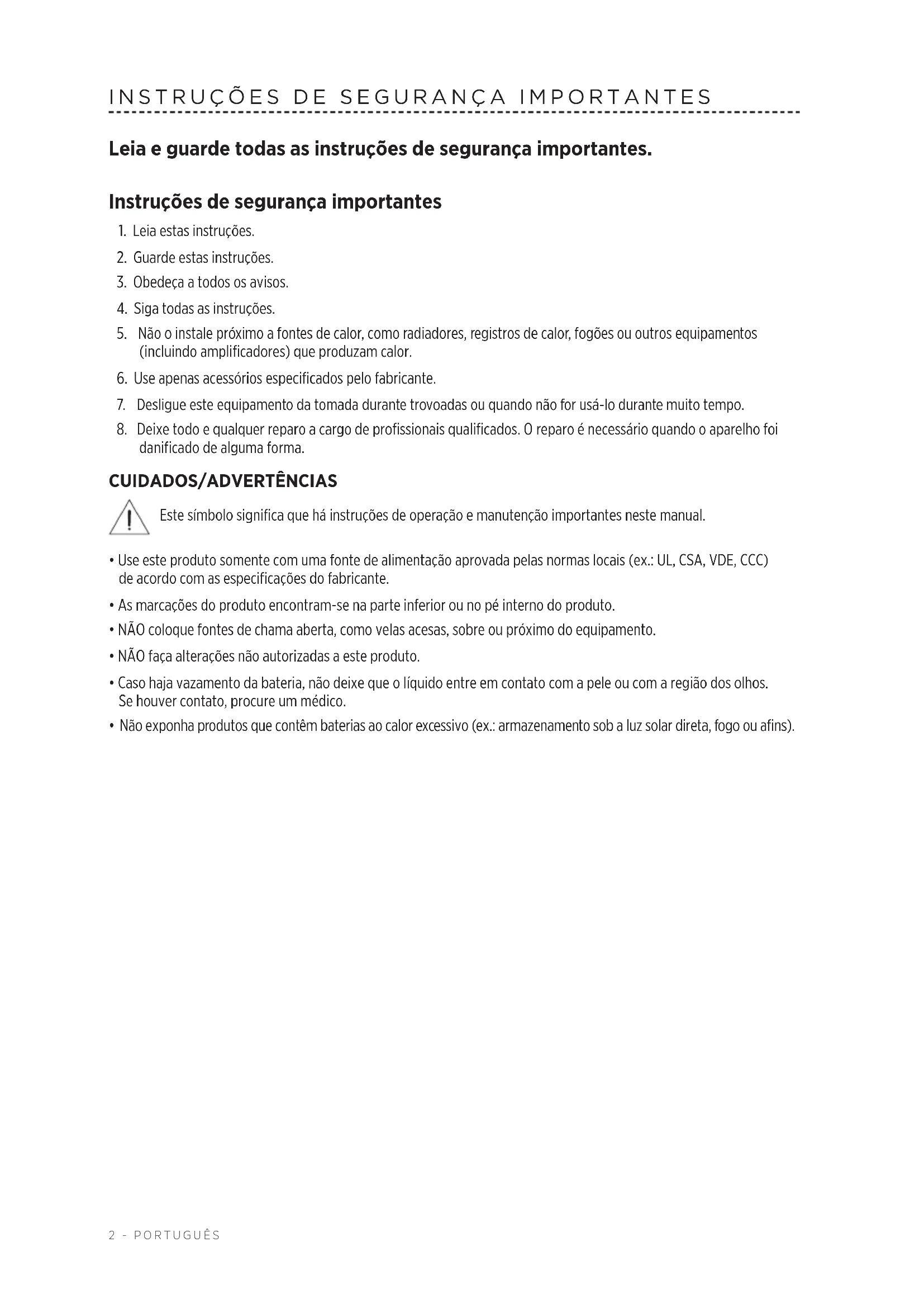 Leia e guarde todas as instruções de segurança importantes. Instruções de segurança importantes