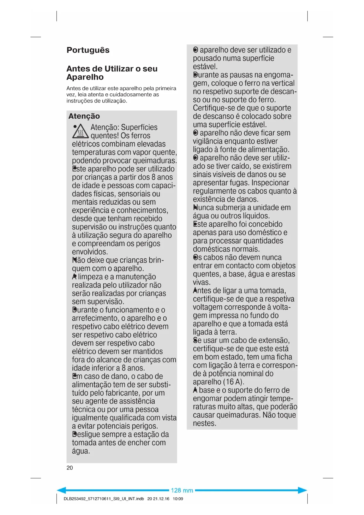 DLB253492_5712710611_SI9_UI_INT.indb 19 21.12.16 10:09Português Antes de Utilizar o seu Aparelho Antes de utilizar este aparelho pela primeira vez, leia atenta e cuidadosamente as instruções de utilização. Atenção