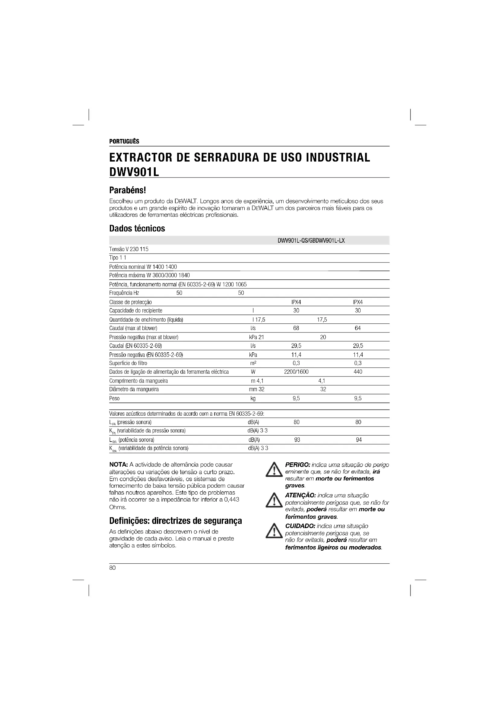 Encontre gratuitamente o manual do aparelho DWV901L DEWALT em formato PDF.