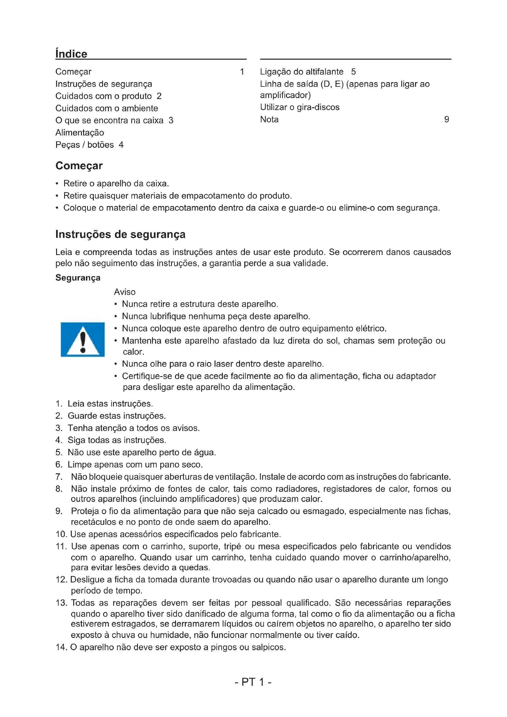- Nunca olhe para o raio laser dentro deste aparelho.