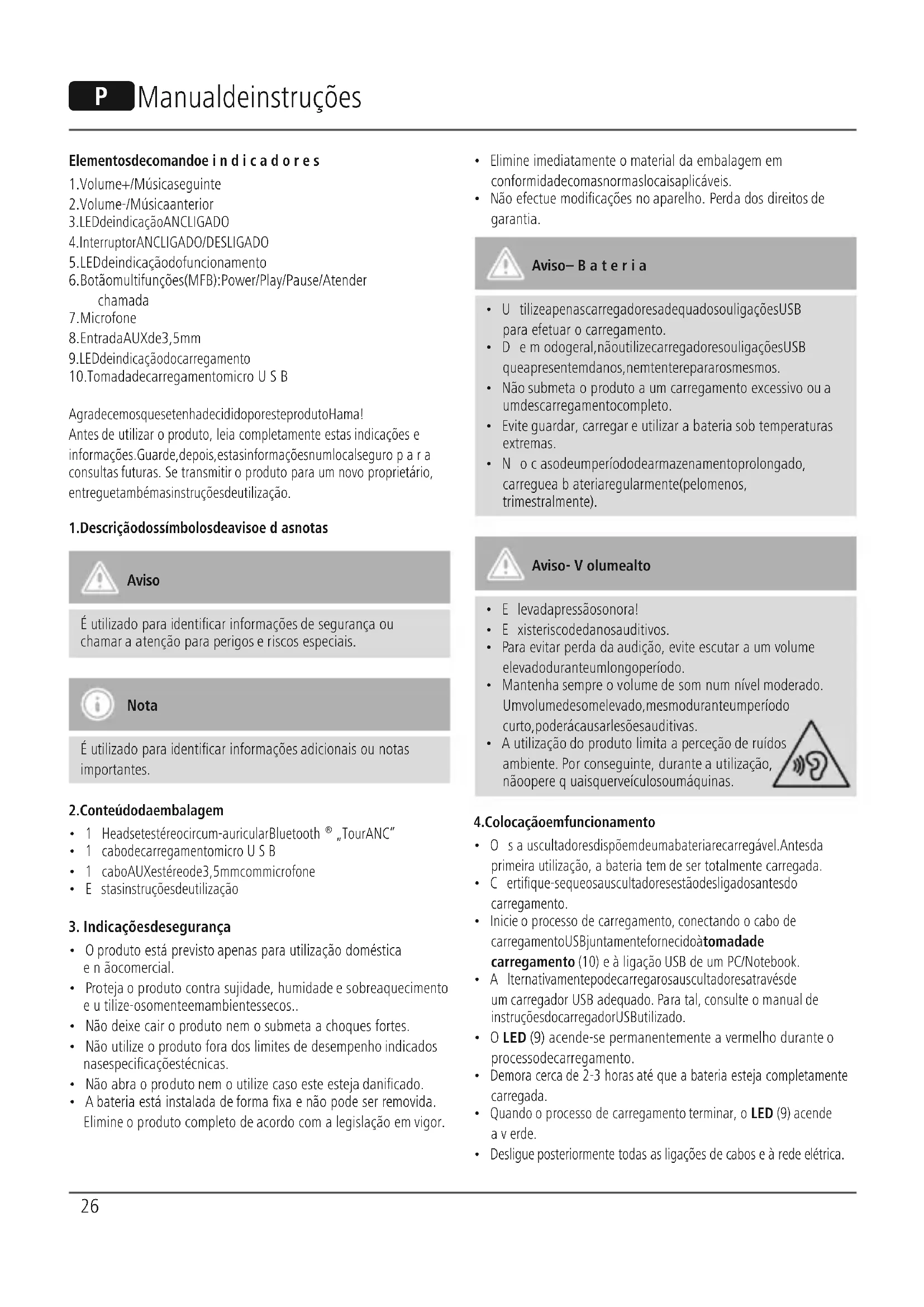 - Osauscultadores dispõem de uma bateria recarregável. Antes da primeirautilização, abateria tem de ser totalmente carregada.