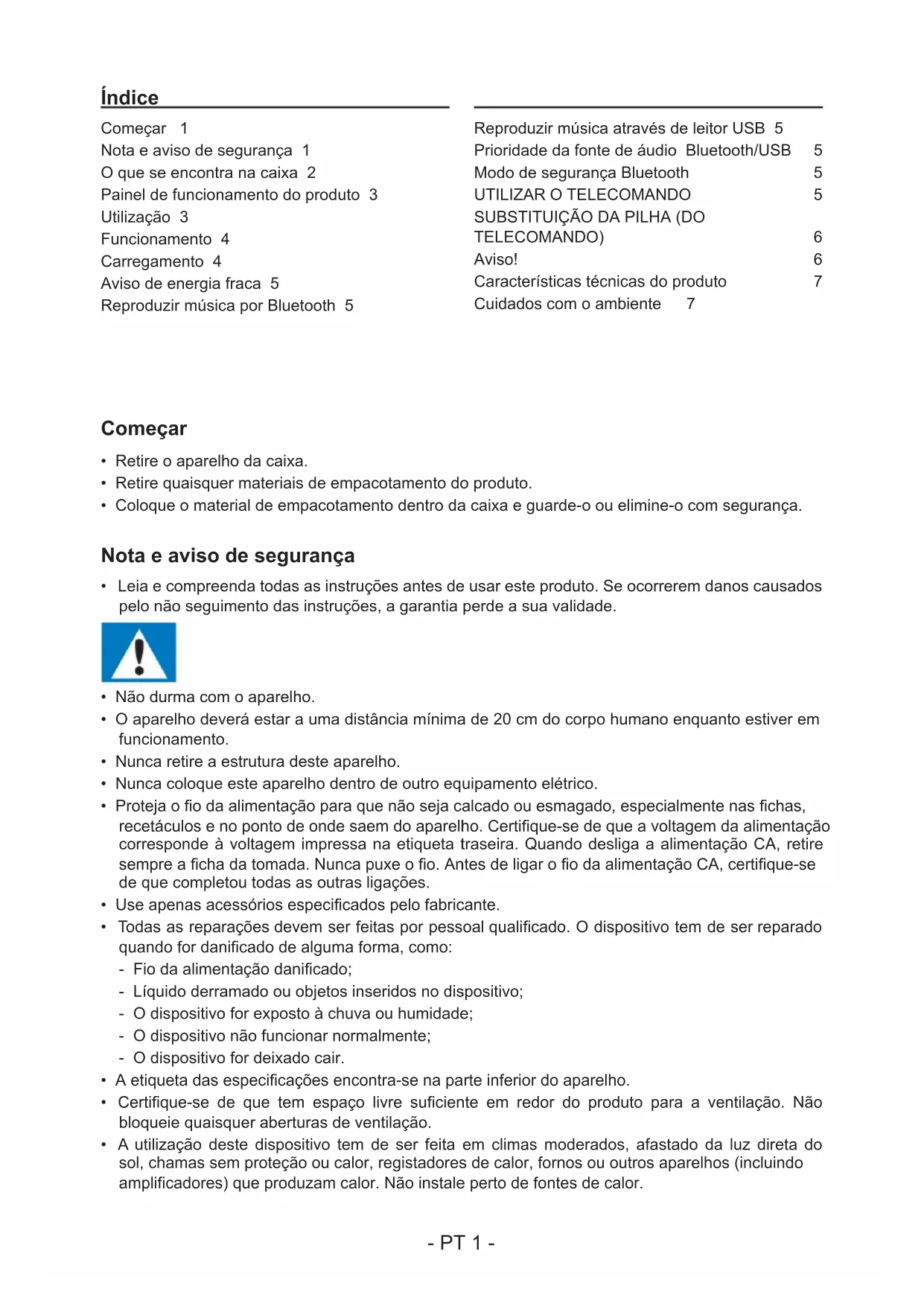 - Se tiver uma pen USB ligada, a coluna de som reproducz automaticamente a música por USB, reproduzindo a partir da posicao na ultima faixa escutada.
